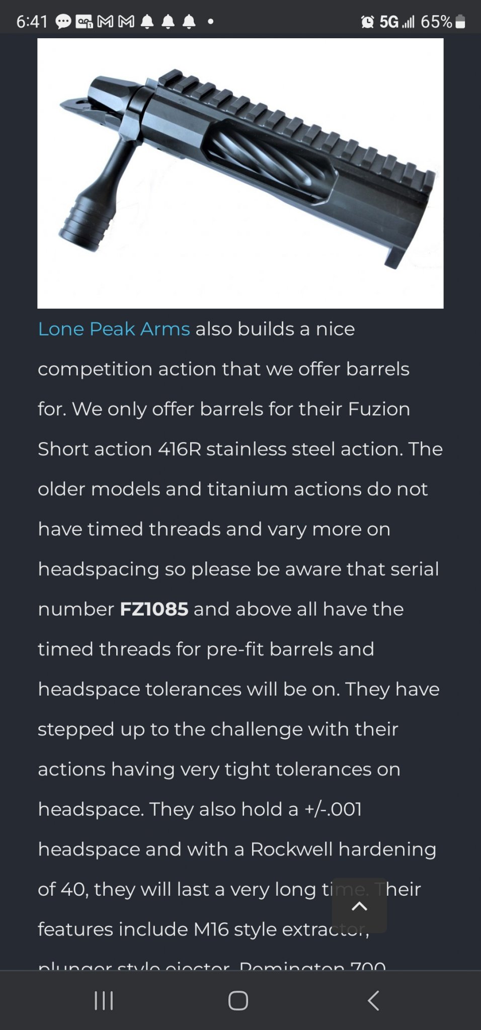 Criterion Match barrel, 1-7 twist, with barrel nut, MTU profile, around 1k rounds on the barrel.