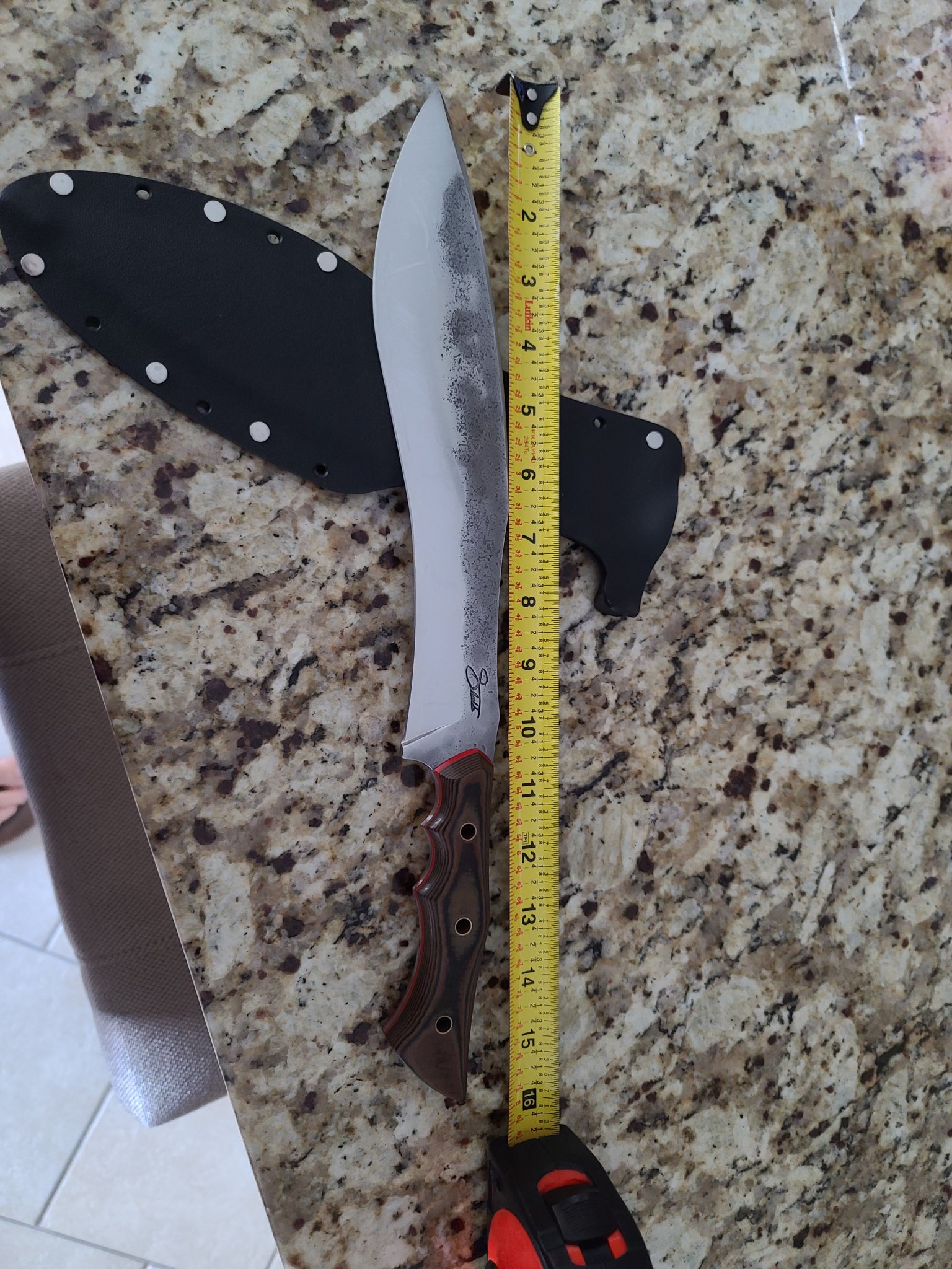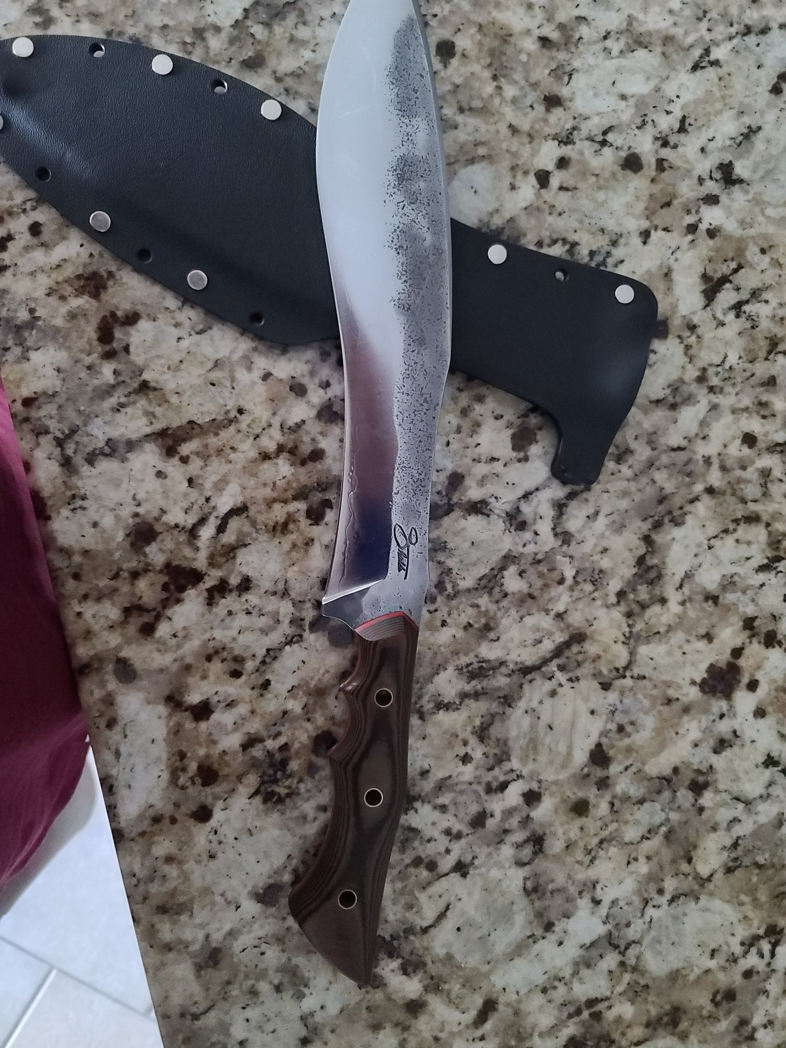 Hand forged Kukri by Taylor Shields. A Muteki Smith under Murry Carter. This is his 2nd one made, but first with his stamp under Murry Carter. Blue super steel and high carbon. Laminated. Only Carter can get this steel from Japan. There's a reason. Ultra sharp.