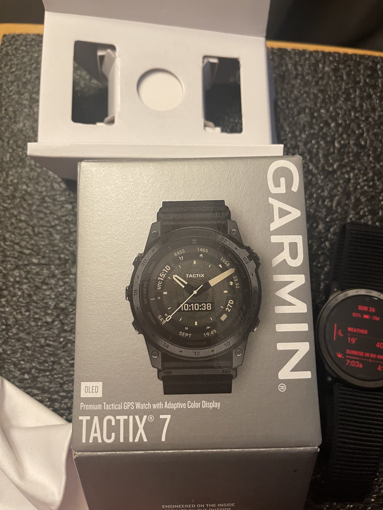Tactix 7 amoled. Newest version. Doesn’t have the black tactical nylon strap. Has a Garmin ultrafit nylon strap that was used and the rubber strap is unworn. Has been worn for about 3 weeks. No issues. You need to pay to unlock applied ballistics, but it comes loaded on there.