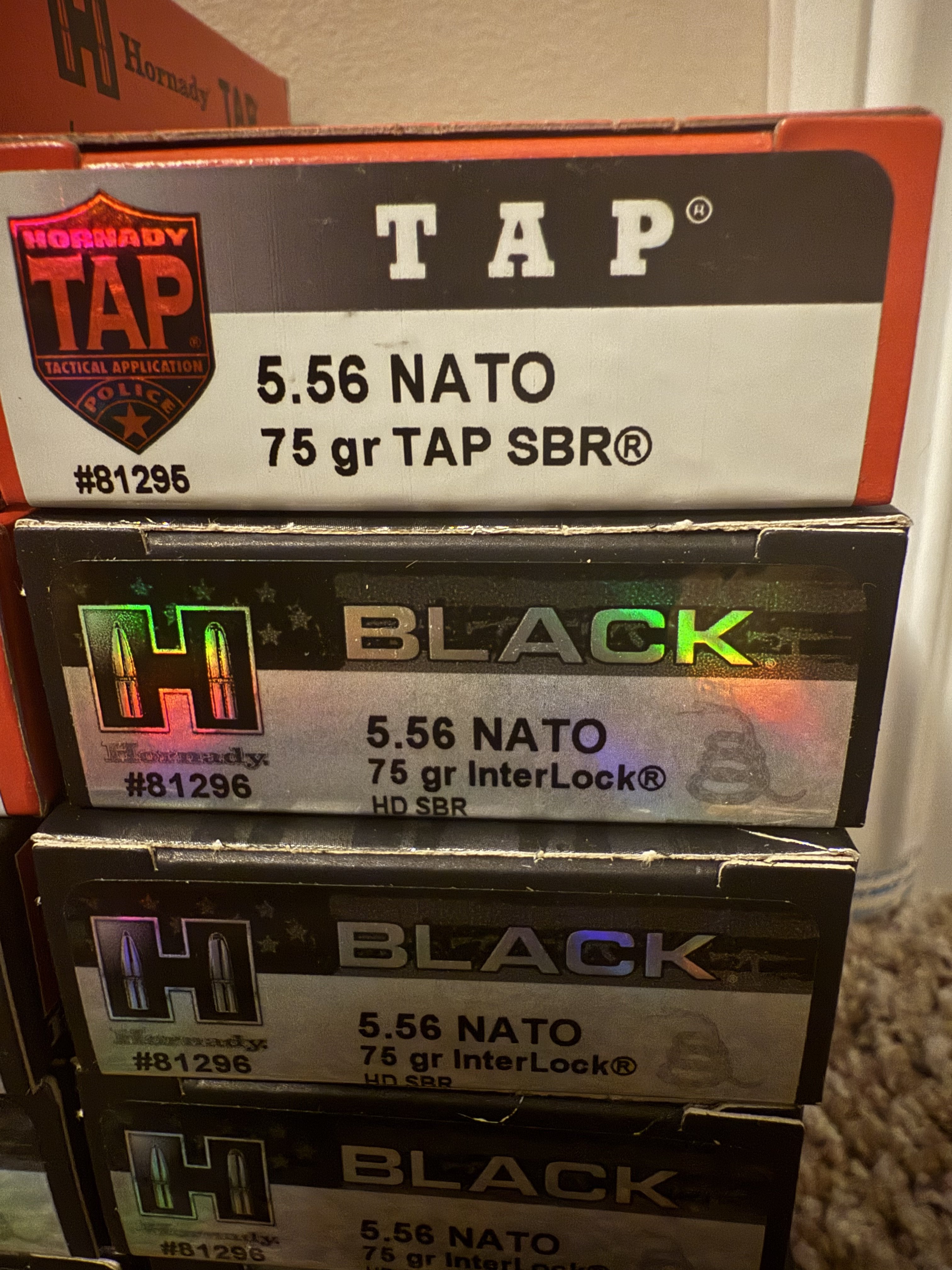 20 boxes of Hornady Black 5.56 75gr Sbr ammo. 11 of the boxes are actually Hornady Tap, but as far as i know it’s still the same ammo.