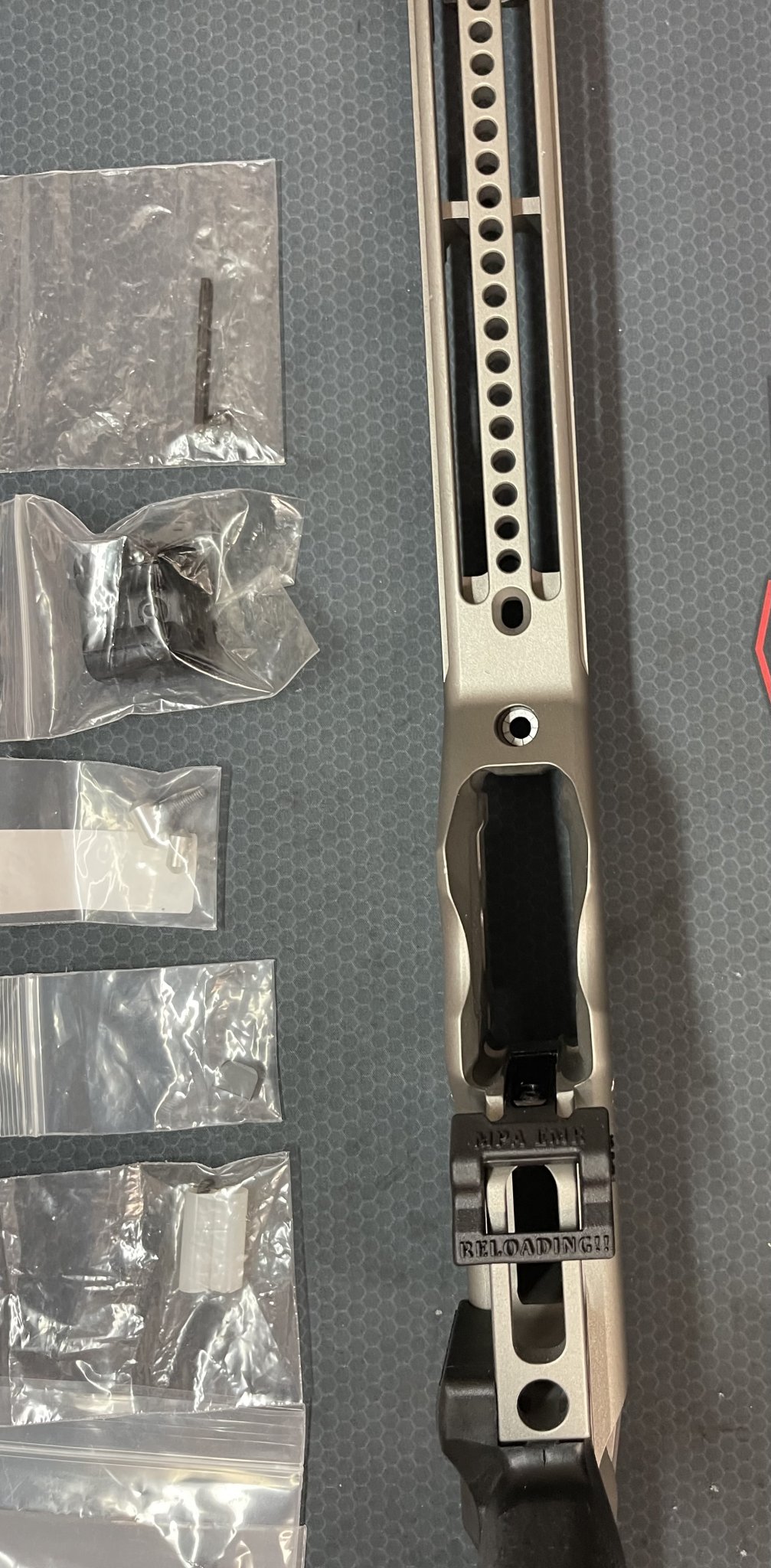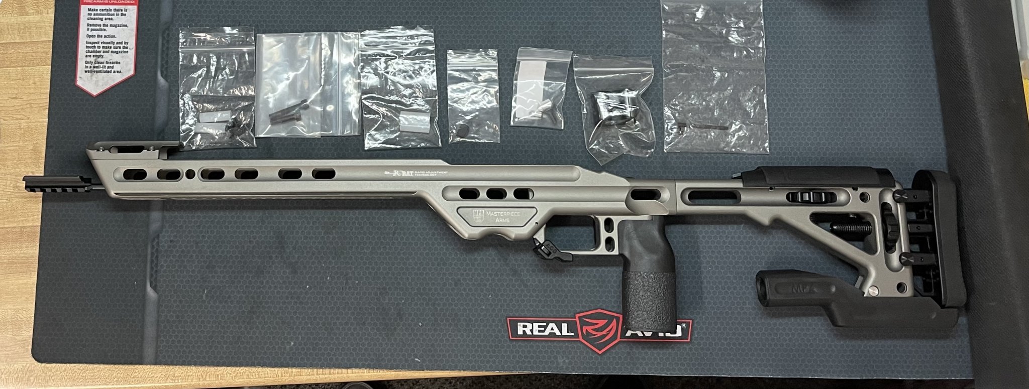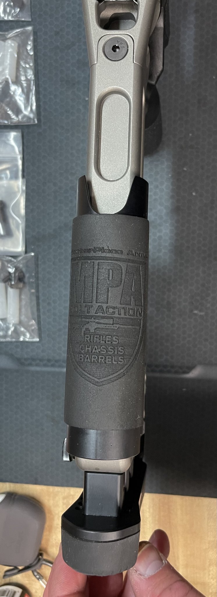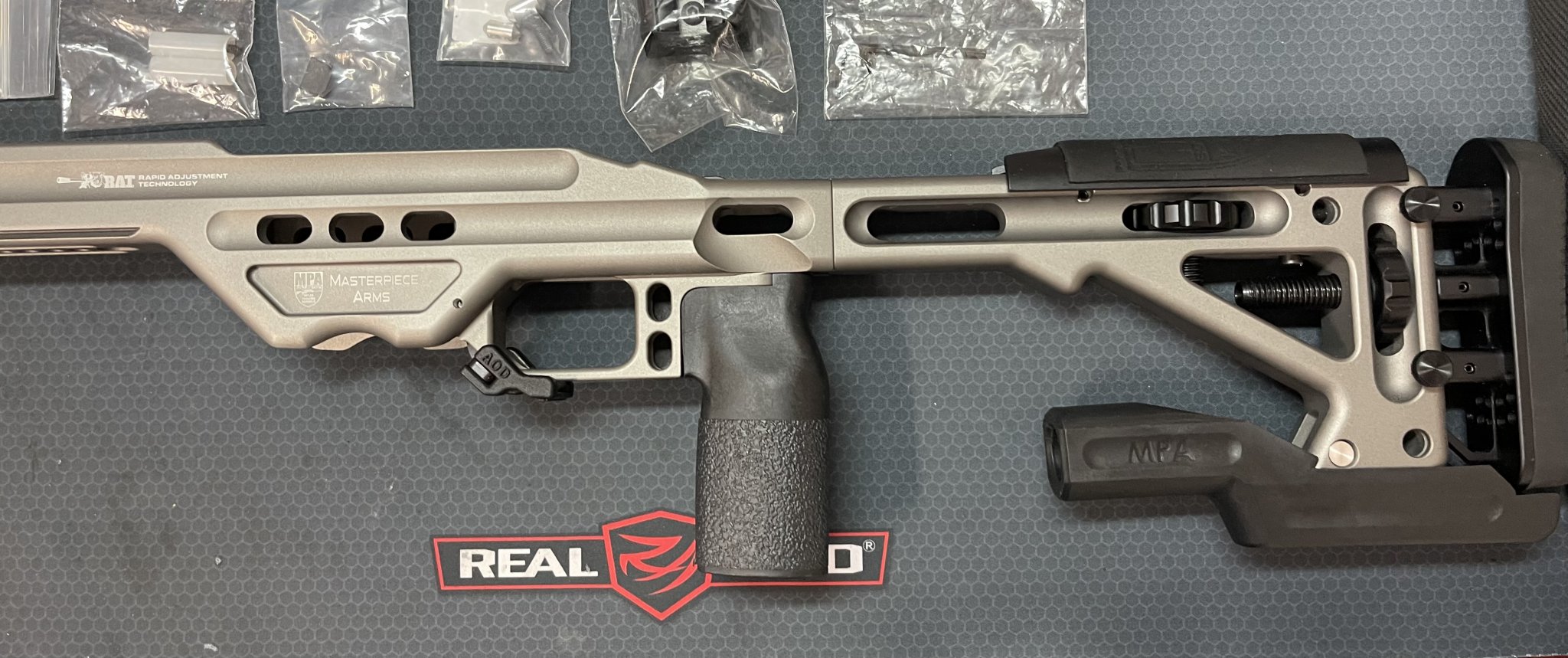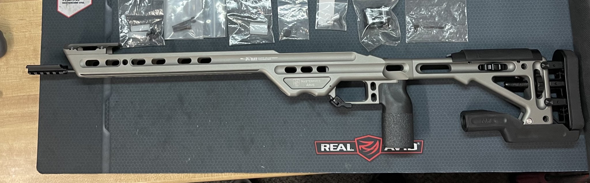 Lightly used MPA BA Comp, 700 SA Right Handed in Gun Metal gray. Ultimate bag rider and all original accessories with a few extras parts. MPA Mag block is above the magazine release with some adhesive. Works extremely well with my Vudoo magazines. I have an extra magazine block included. It also has an adjustable magazine release with an extended mag release. It also has the locking screws for the adjustable cheek riser and LOP. RAT rail cerakote has a few marks on it that I can see from an ADM Atlas Bipod QD mount.