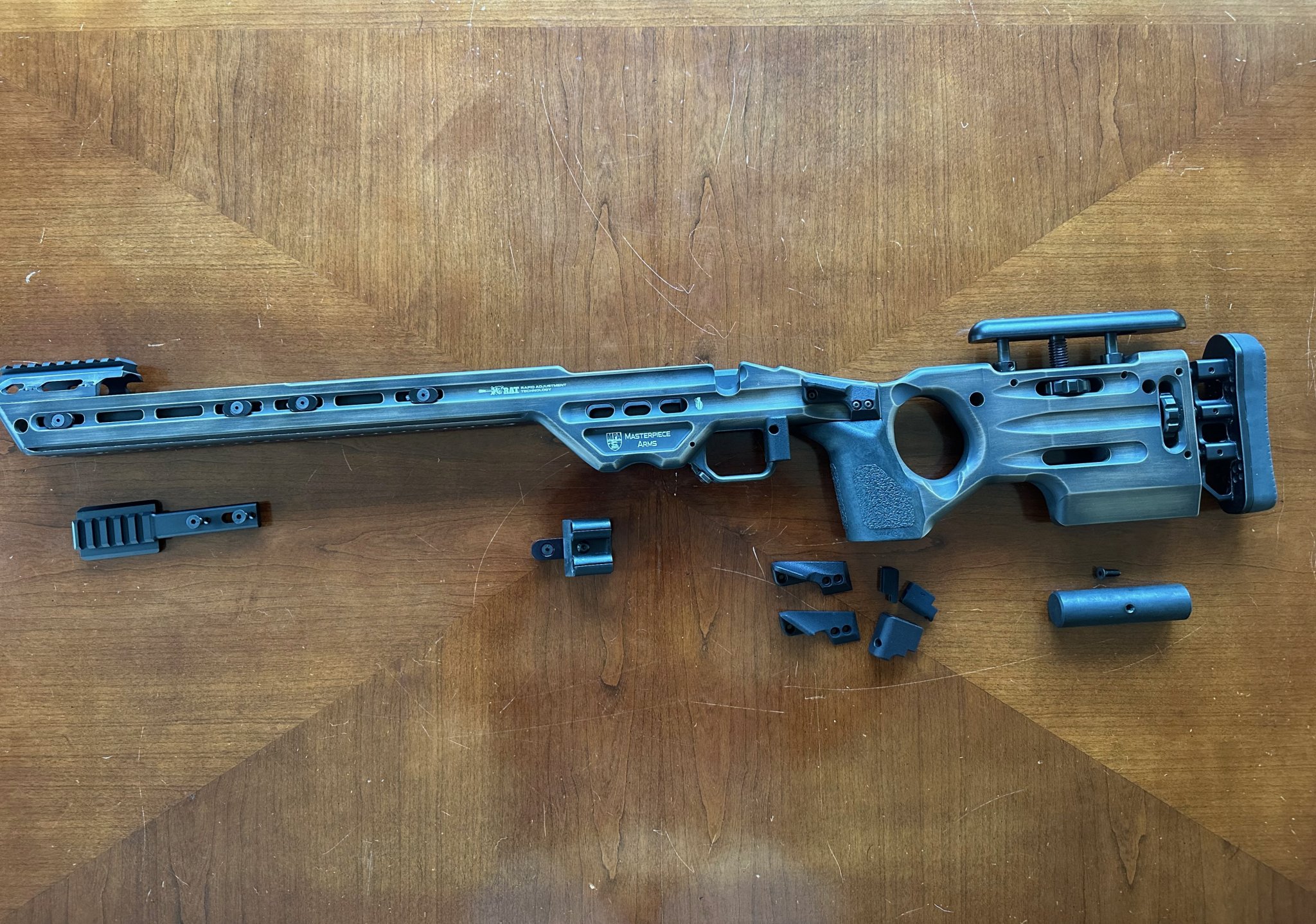 For sale: Left Handed, MPA Matrix Chassis - FDE/Black distressed. Remington 700 SA. Also includes MPA Matrix Weight Tuning System. Only a few months old and used in a few PRS matches.