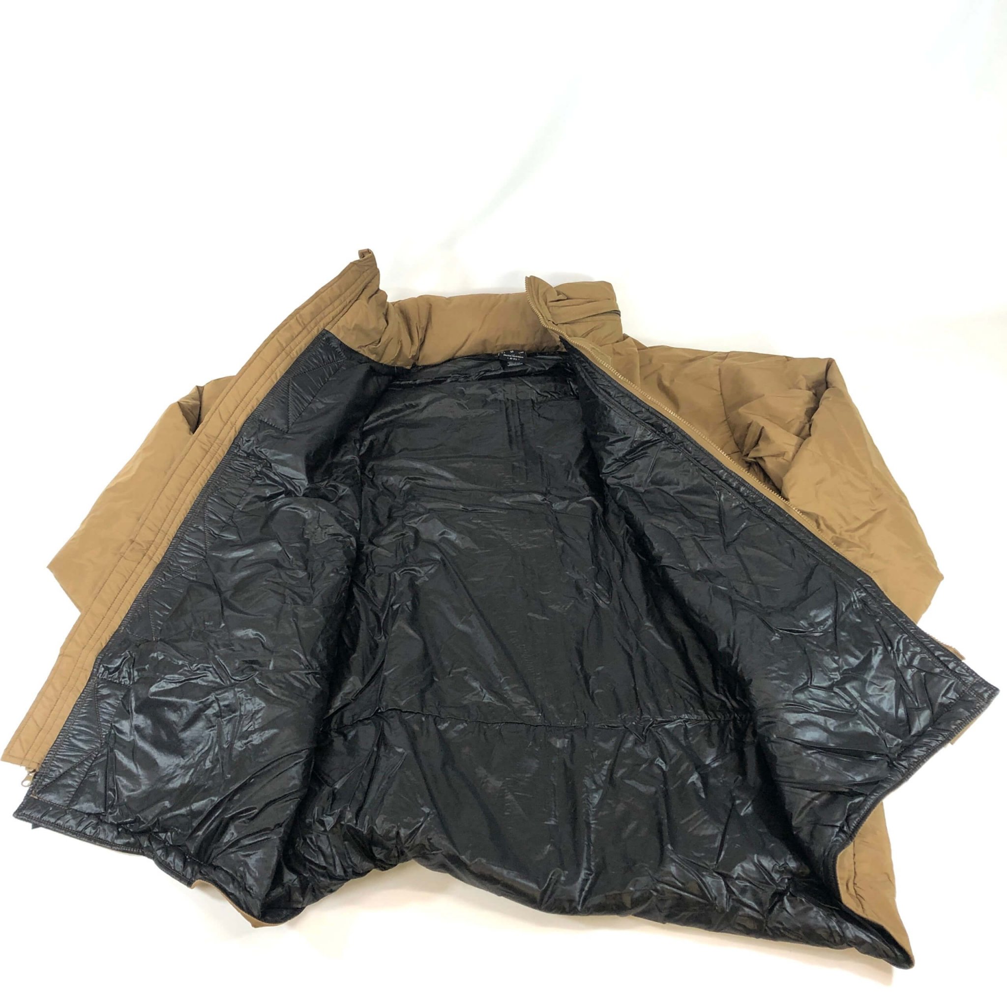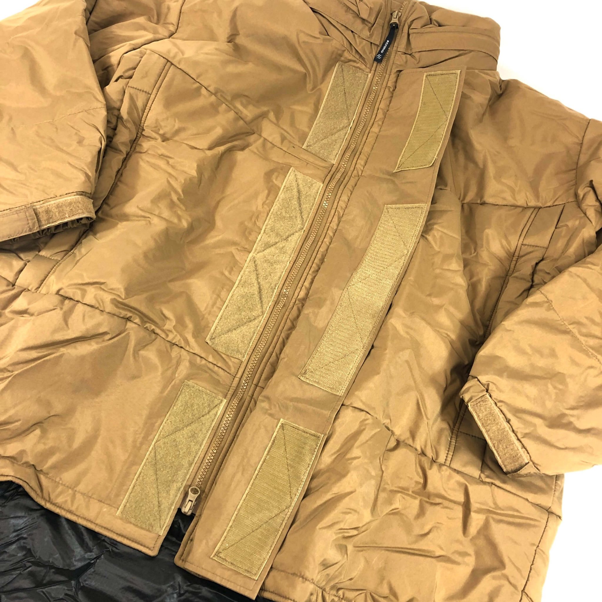 This is a level 7 PCU parka from Beyond Clothing. You can wear this parka as an extra layer in the cold, and still wear your gear. The parka fits over a small backpack and body armor. The parka has a longer back tail to fit over gear properly. There is a stowaway hood in the collar and full length storm flap over the zipper. The parka has two insulated zippered pockets. Also, this insulated parka stays warm even when wet.