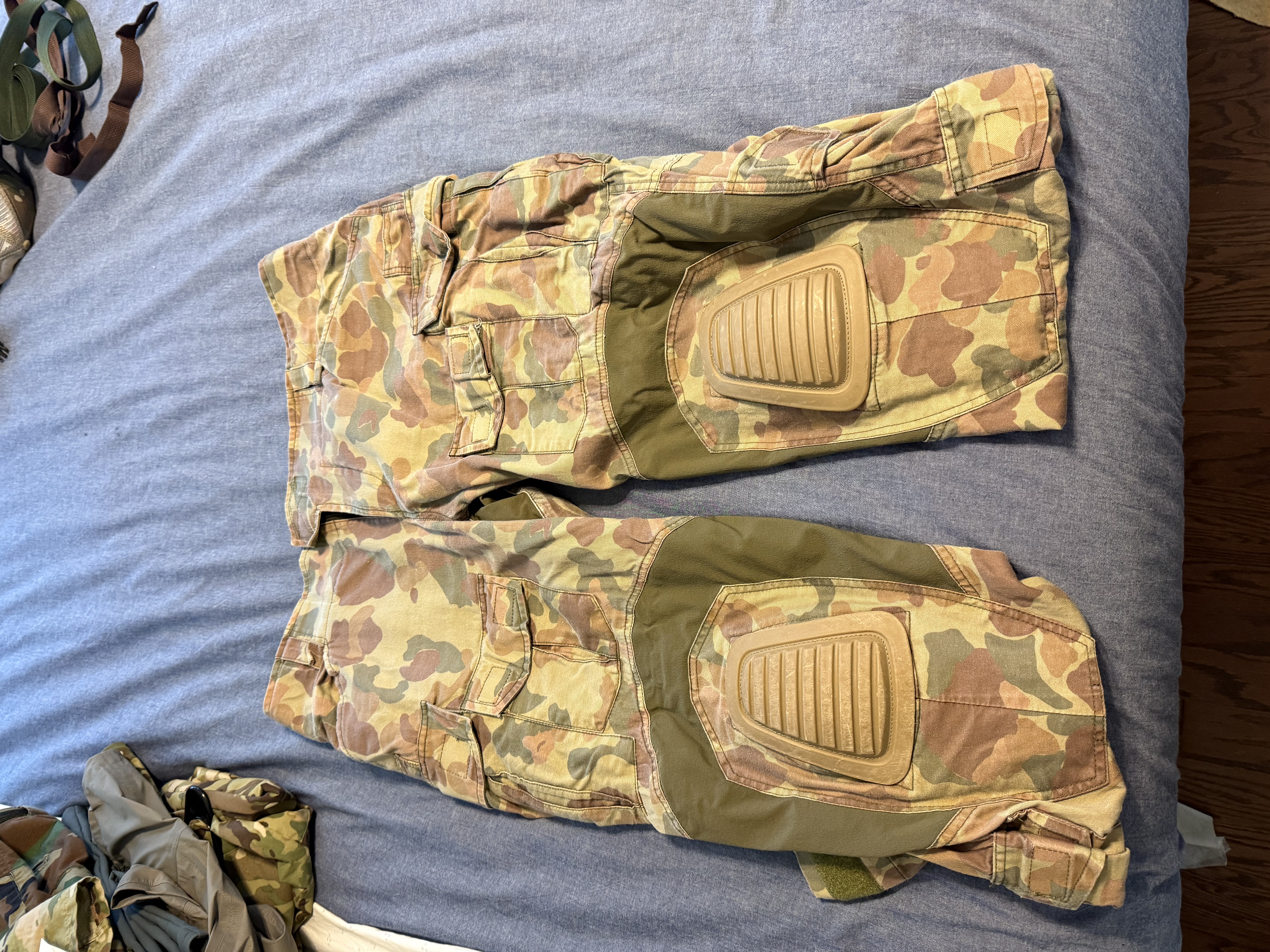 I’ve got a great pair of Roman G3s in WWII Duck Hunter camo tan side out available. They’re a size 40L.