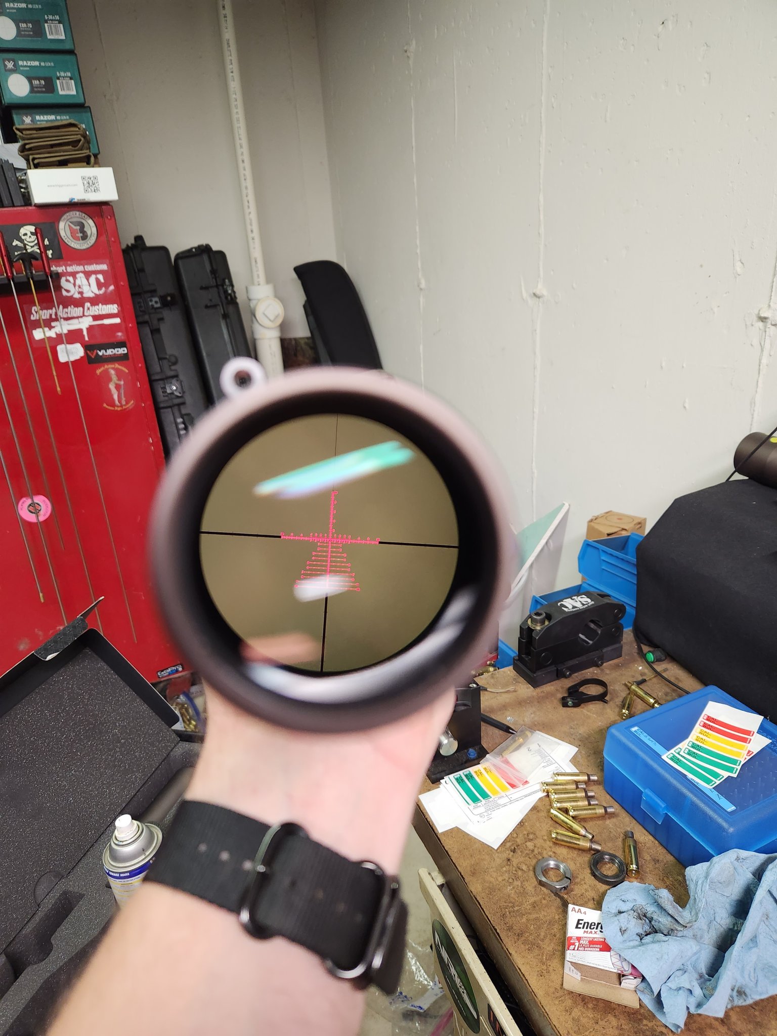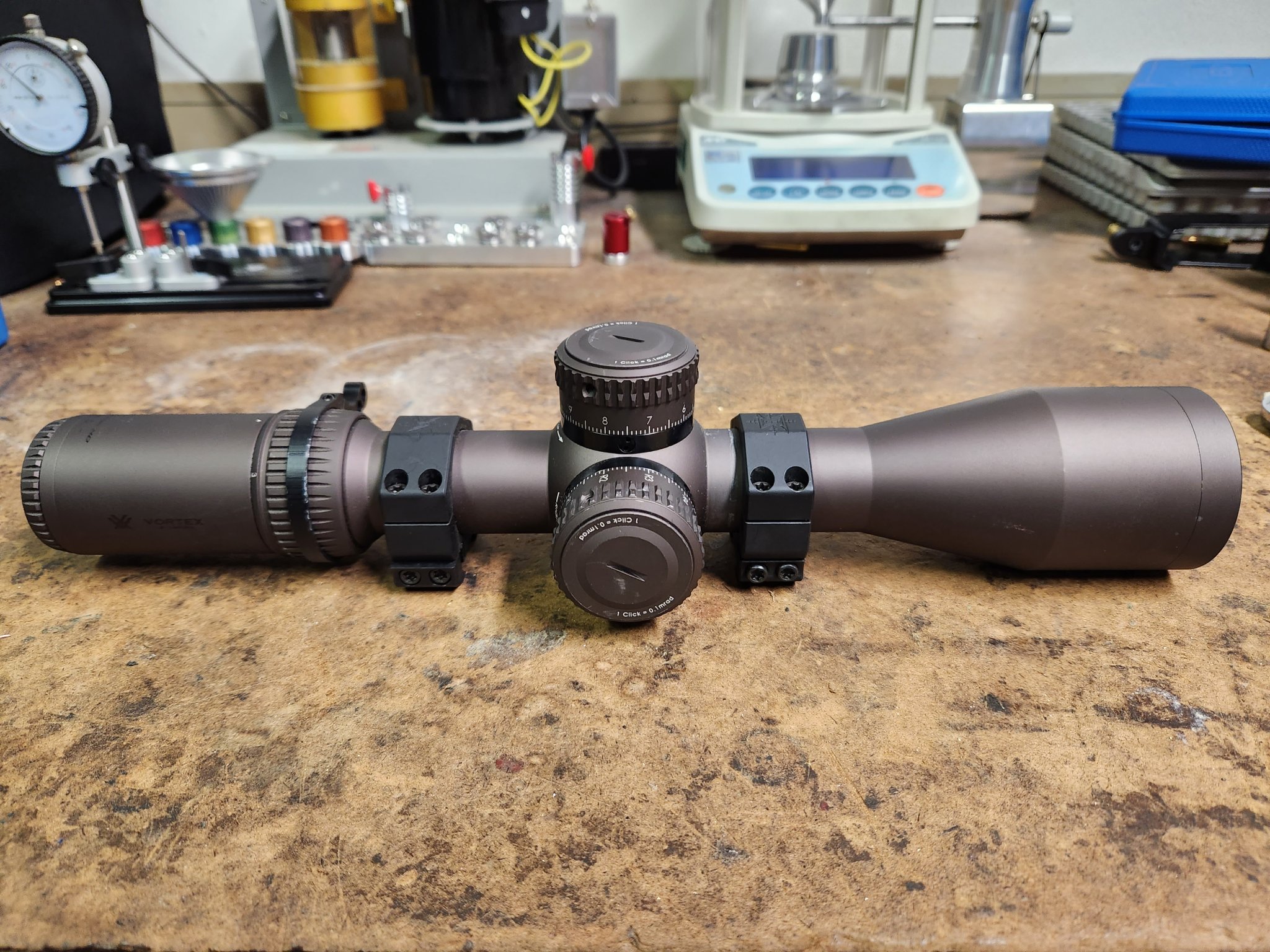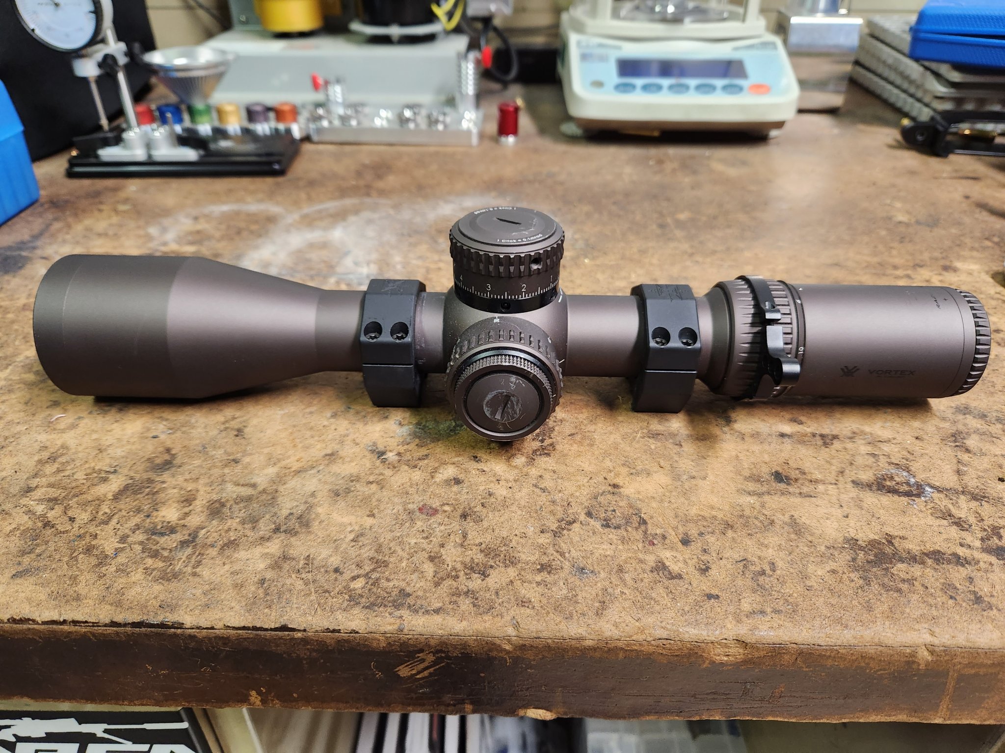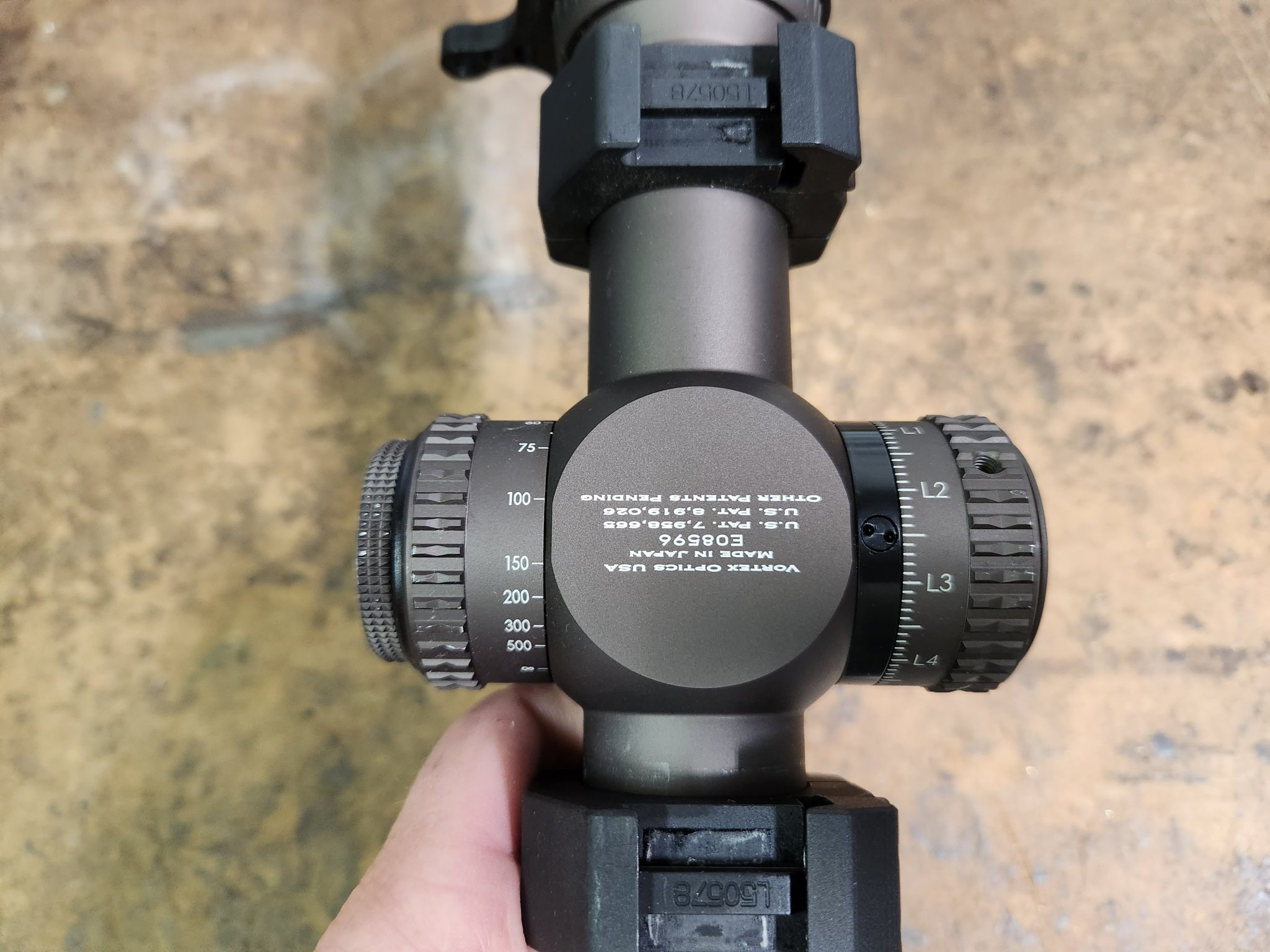 Selling a Vortex Gen2 Razor 3-18x50 with the EBR7C reticle. It's in Vortex rings, i think they are the 'low' height. It'll also come with the switchview thats on it. It was used on a Vudoo. It was run in a handful of matches and has a few scars as a result but nothing crazy. I tried to take pictures of the notable bruises but there arent any dings or stuff like that. It tracks and functions great. The battery is good for the reticle illumination.