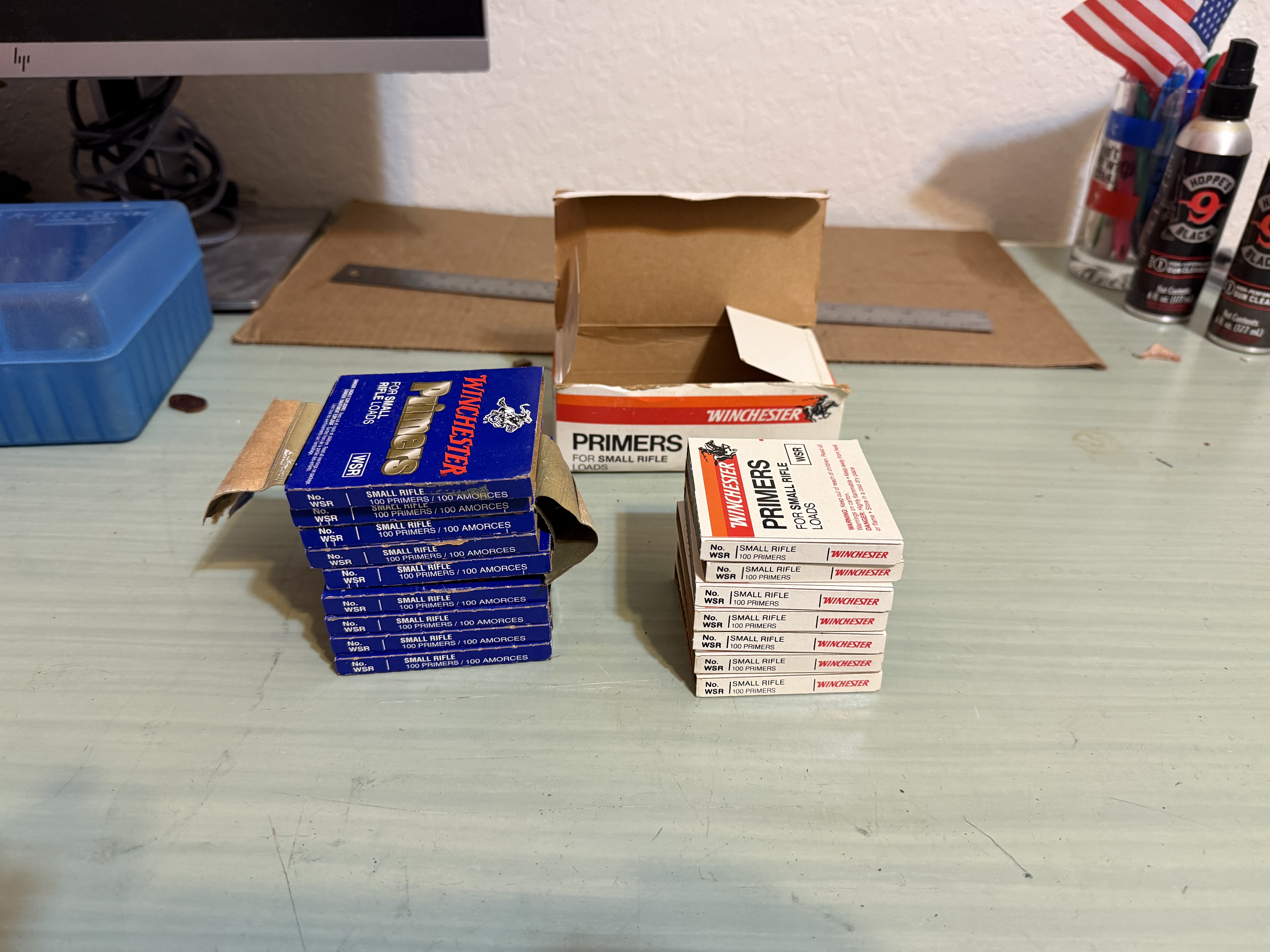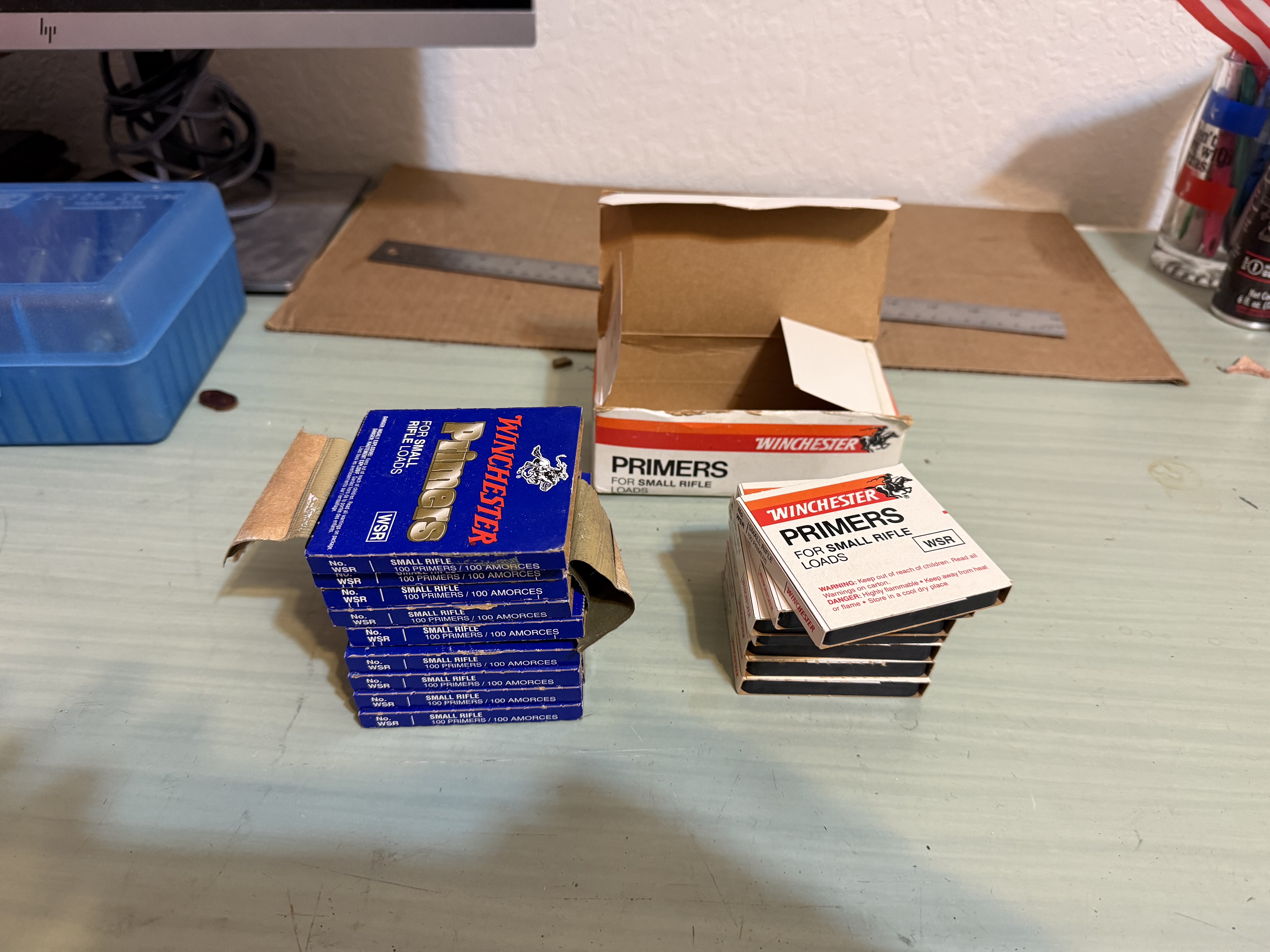 I’ve got 1600 Winchester WSR primers and 1000 WLR primers.