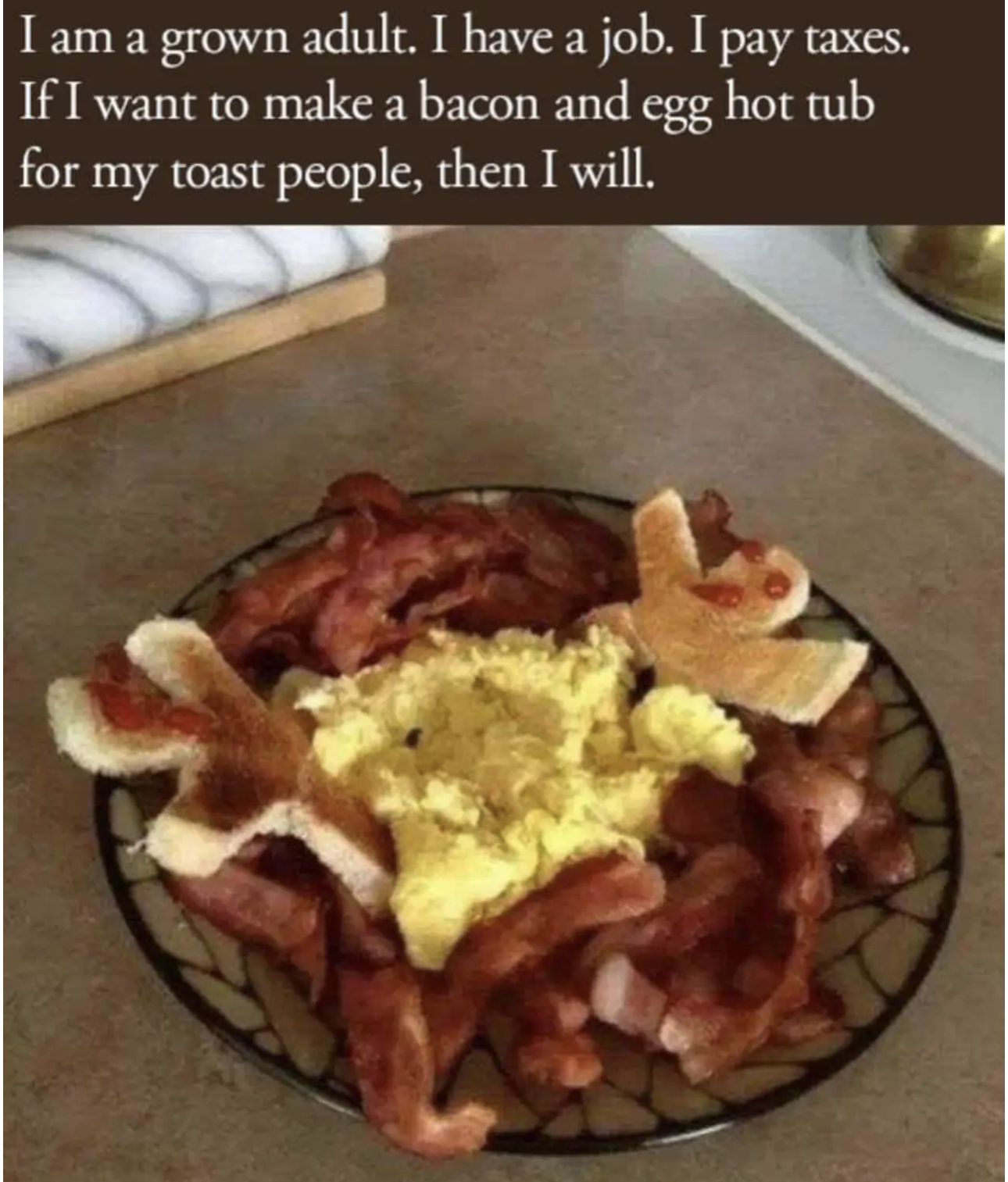 Submerged and dripping in butter!That looks pretty gay, dude! Those are two male toast-people in the hot tub together. Where are the girls?