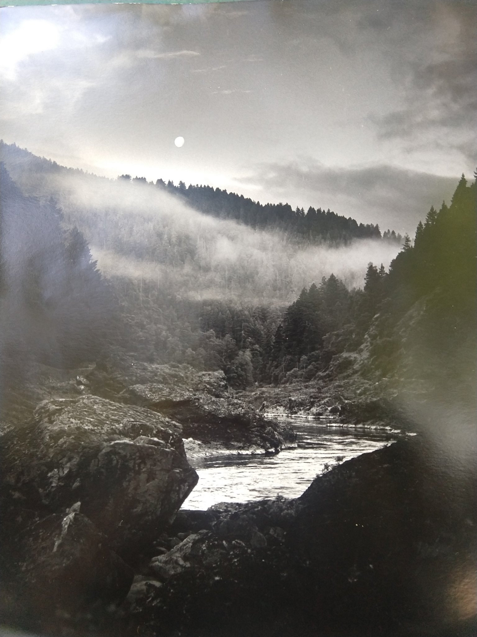 That black and white is a picture of a print of a photo my father took at of the Rogue years ago and the second is one I snapped with my cell phone the other day of the Rogue just below Agness.