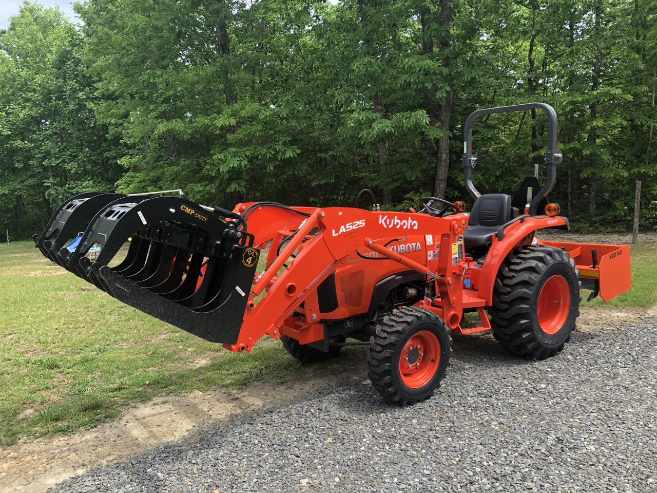 Only having 4 acres I couldn't justify the $11,000 extra for the competing Kubota model as well that the dealership had to order it and didn't know when it would arrive/months.If you have trees/timber/big brush on your place, a grapple will be the best $ you ever spent.