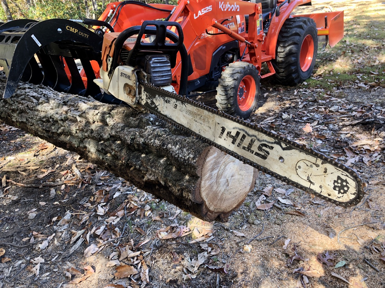 I have the exact same Kubota and LA525 front end. When hurricane Laura came through here 3 yrs ago it put about 20 of my big red oaks and hickories on the ground and ruined about another dozen. Couldn't walk through the place more than 10yds at a time because of all the trees down.