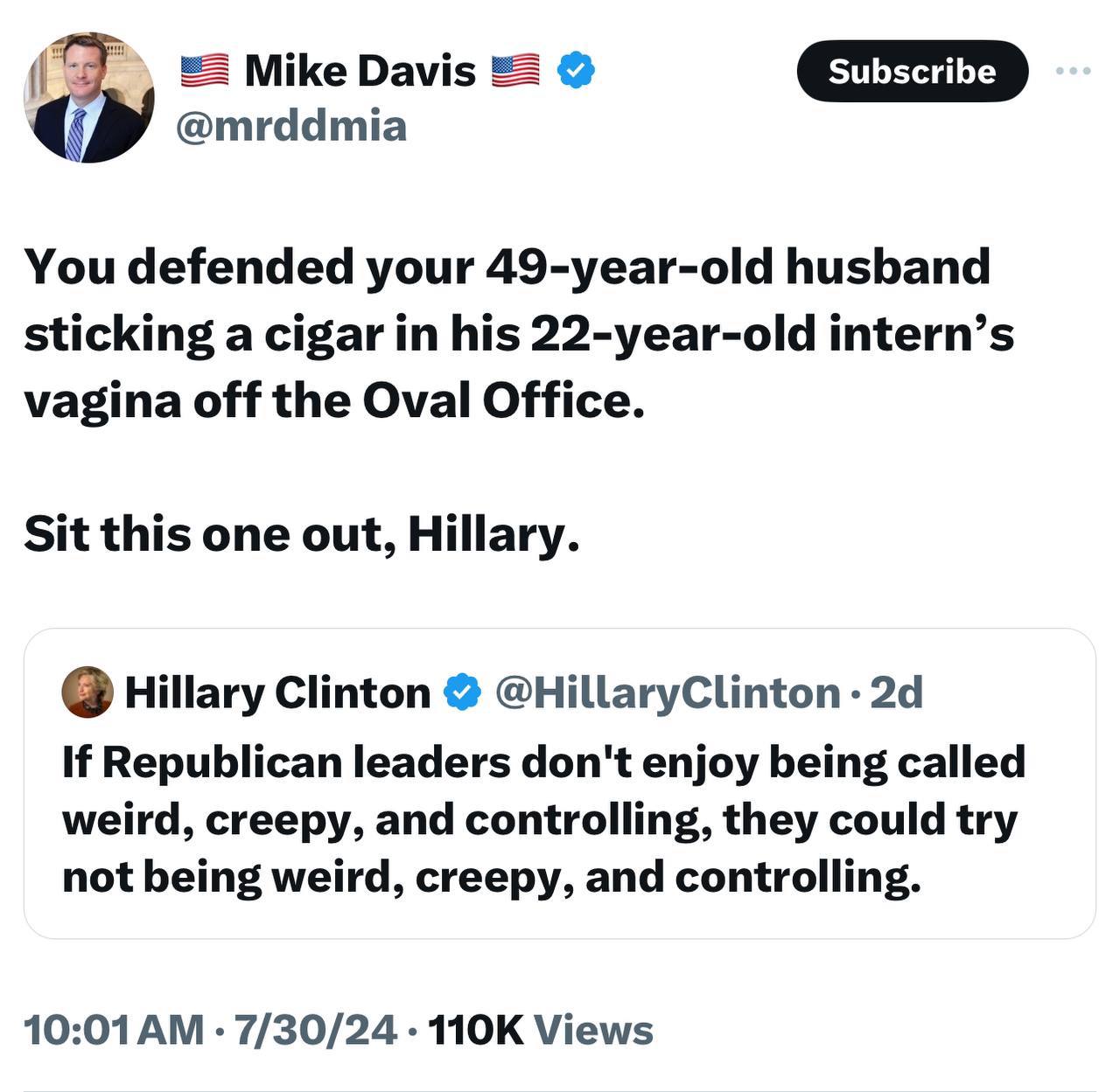 Hillary prefers the other between leg type. Ask Huma.And cock.