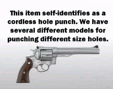 Now we have the solution to gun control!!! We just have cordless Hole punches!!!