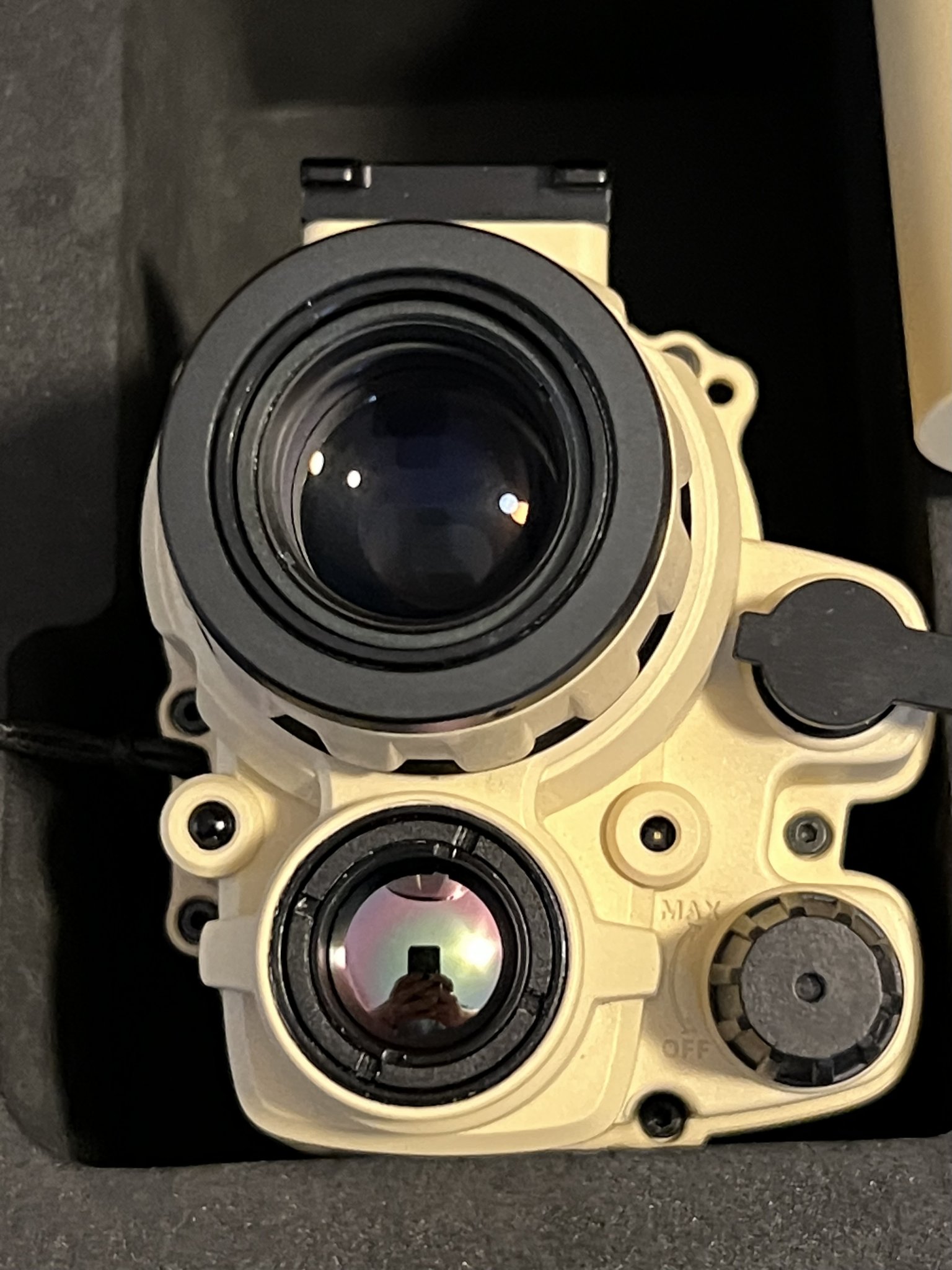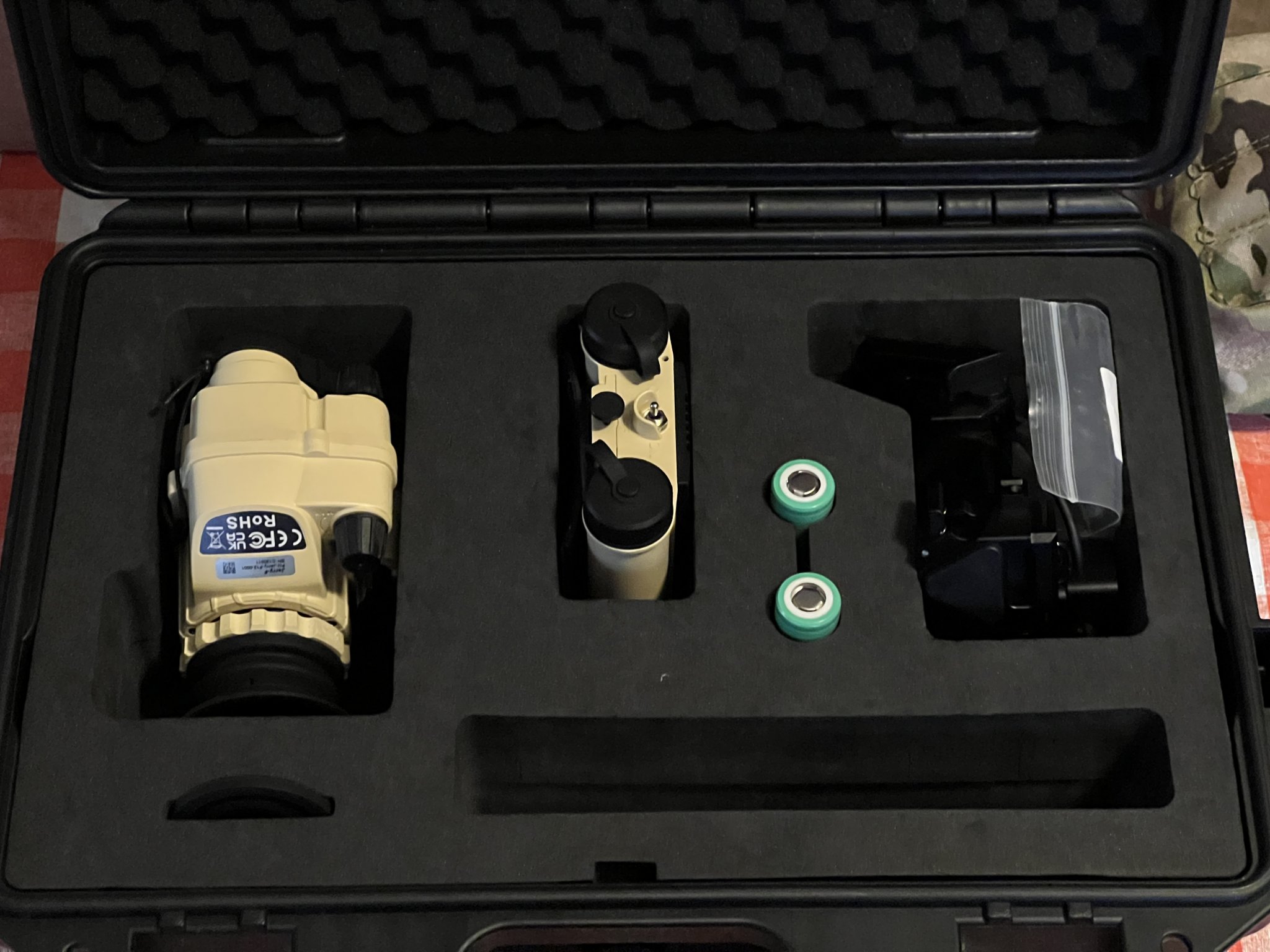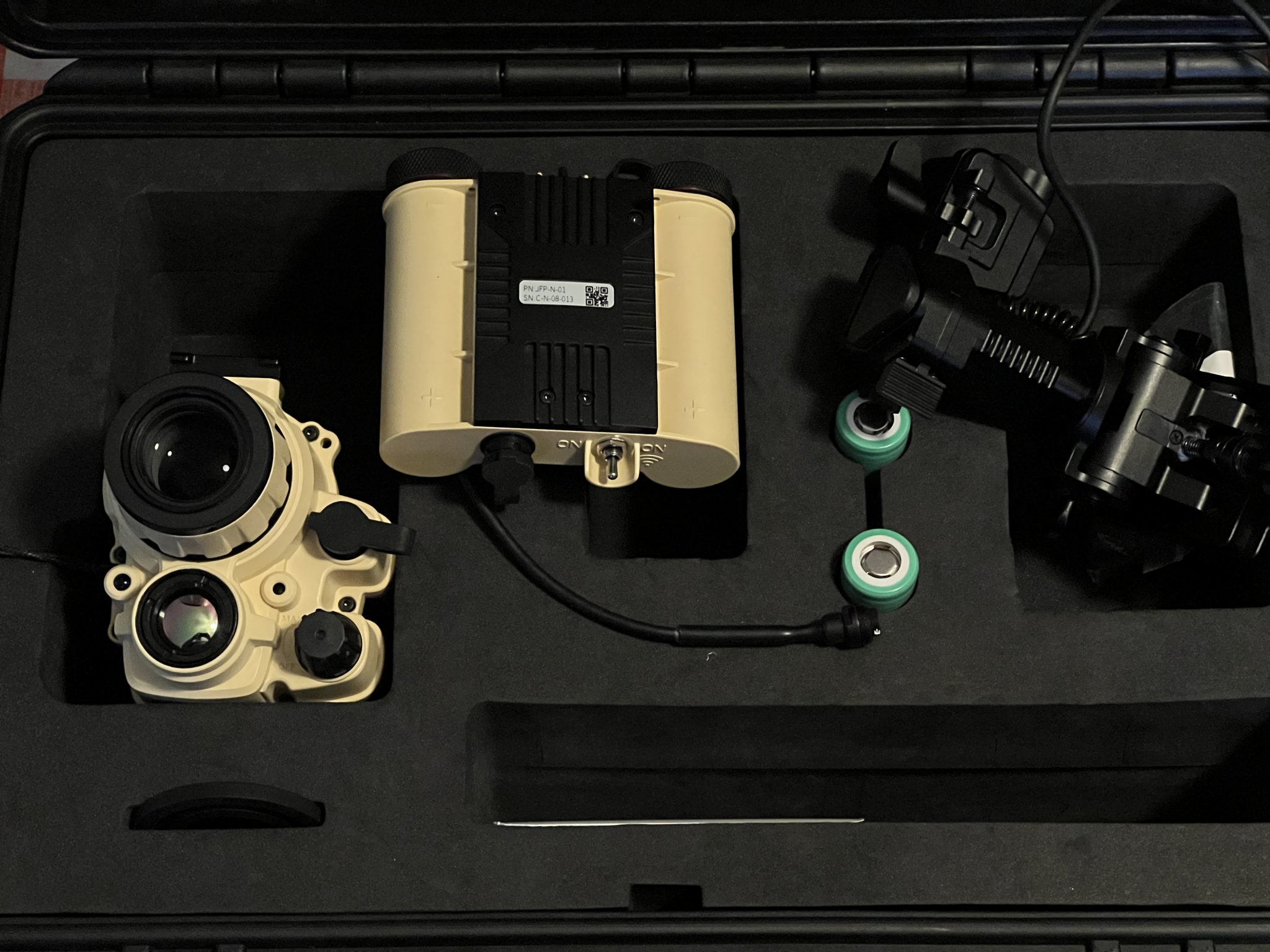 Full factory kit with “Pelican” and all accessories. Built, collimated and purged by The Man himself — Jay @ SureShot. Both NV and Thermal performance are spectacular and have bang-on alignment. Performance absolutely *crushes* the PSQ-20/20A/20B in every measurable way. Only “issue” is the included INVG-style mount doesn’t seem as durable as the ITT/L3 models. If you’re not a breacher it should never be an issue. The Jerry seems pretty durable otherwise, but I’ve babied it.