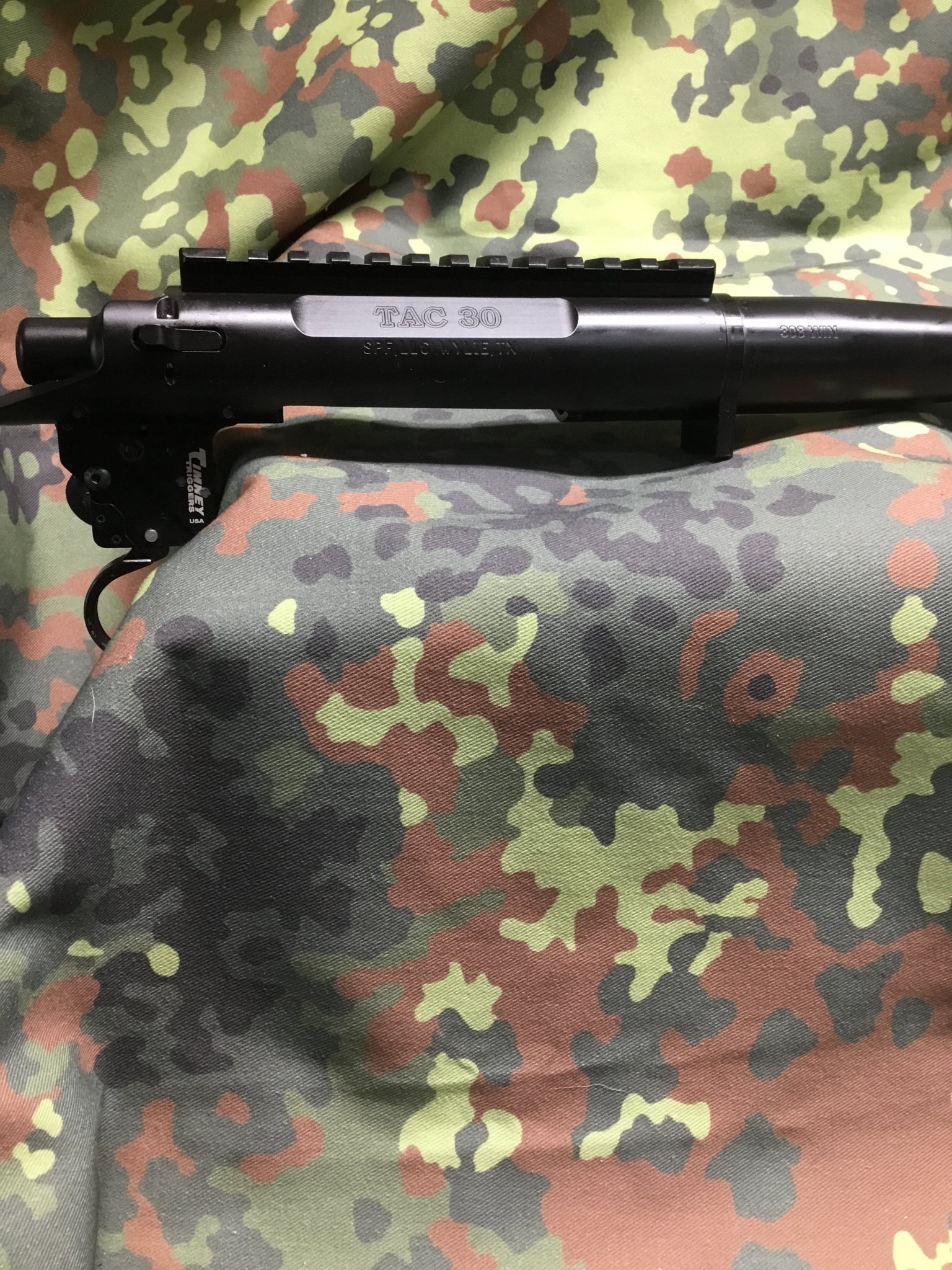 Stiller TAC30 Action with 22” Bartlein 1:11.25 Remington Varmint Barrel Fluted with APA LB Muzzle Brake Cerakote Black with Timney 2.5lbs Trigger.