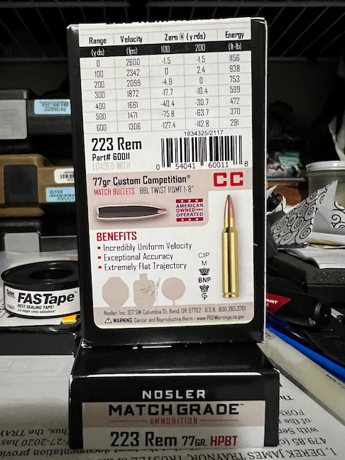Manufacturer Link - Ammo: https://www.nosler.com/223-rem-77gr-custom-competition-match-grade-ammunition.html