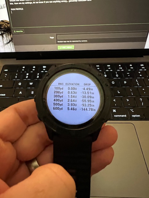 Anyone actually using the Applied Ballistics app on their Garmin? I finally sat down to set it up and can't seem to get it right. I have entered my zero distance at 100yds and when I look in the Range Card it shows my bullet drop at 4.81" which is what it should be for 200yds. I can't seem to make any changes that fix this. Here are my settings, let me know if you see anything wrong... genuinely confused here.
