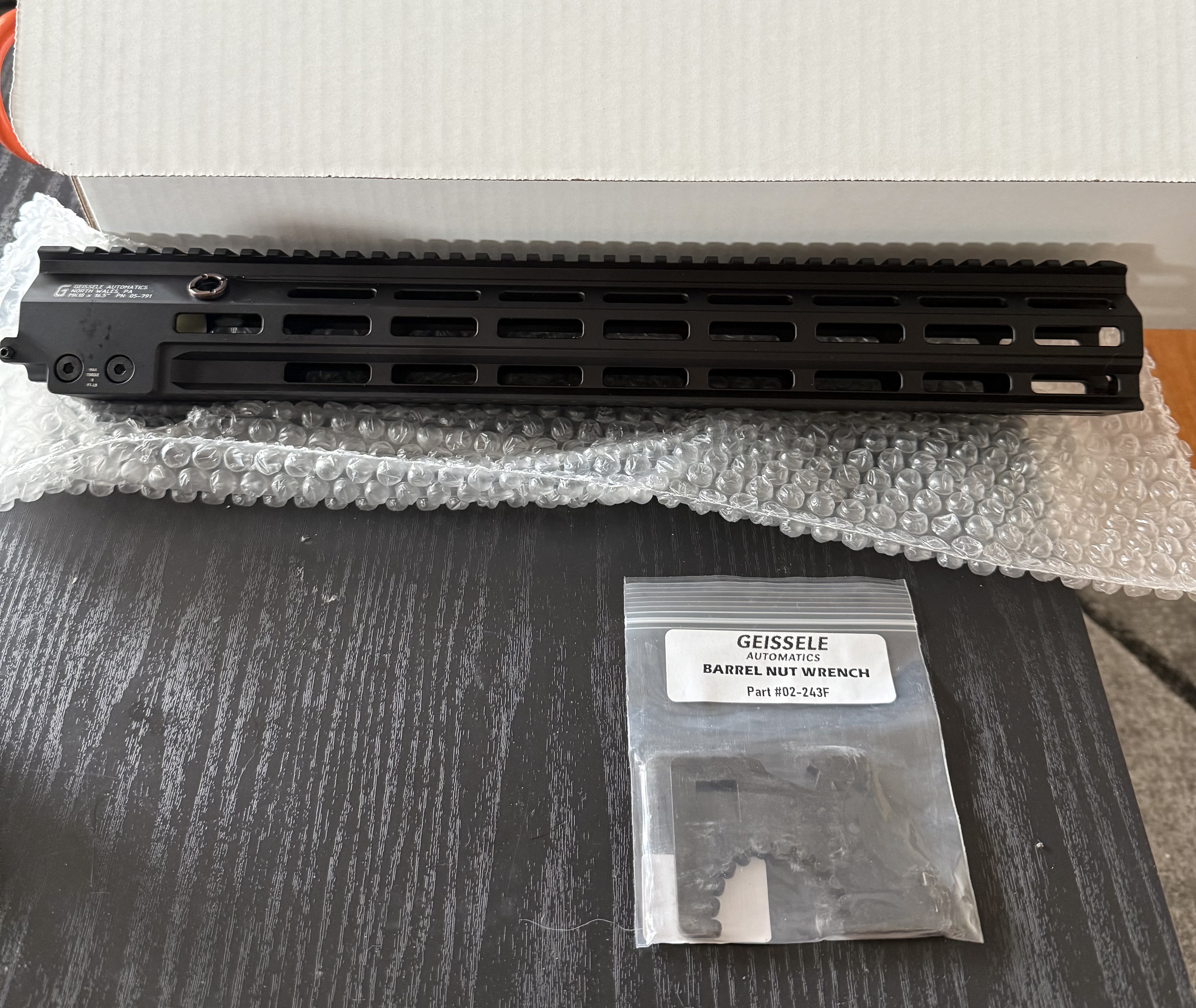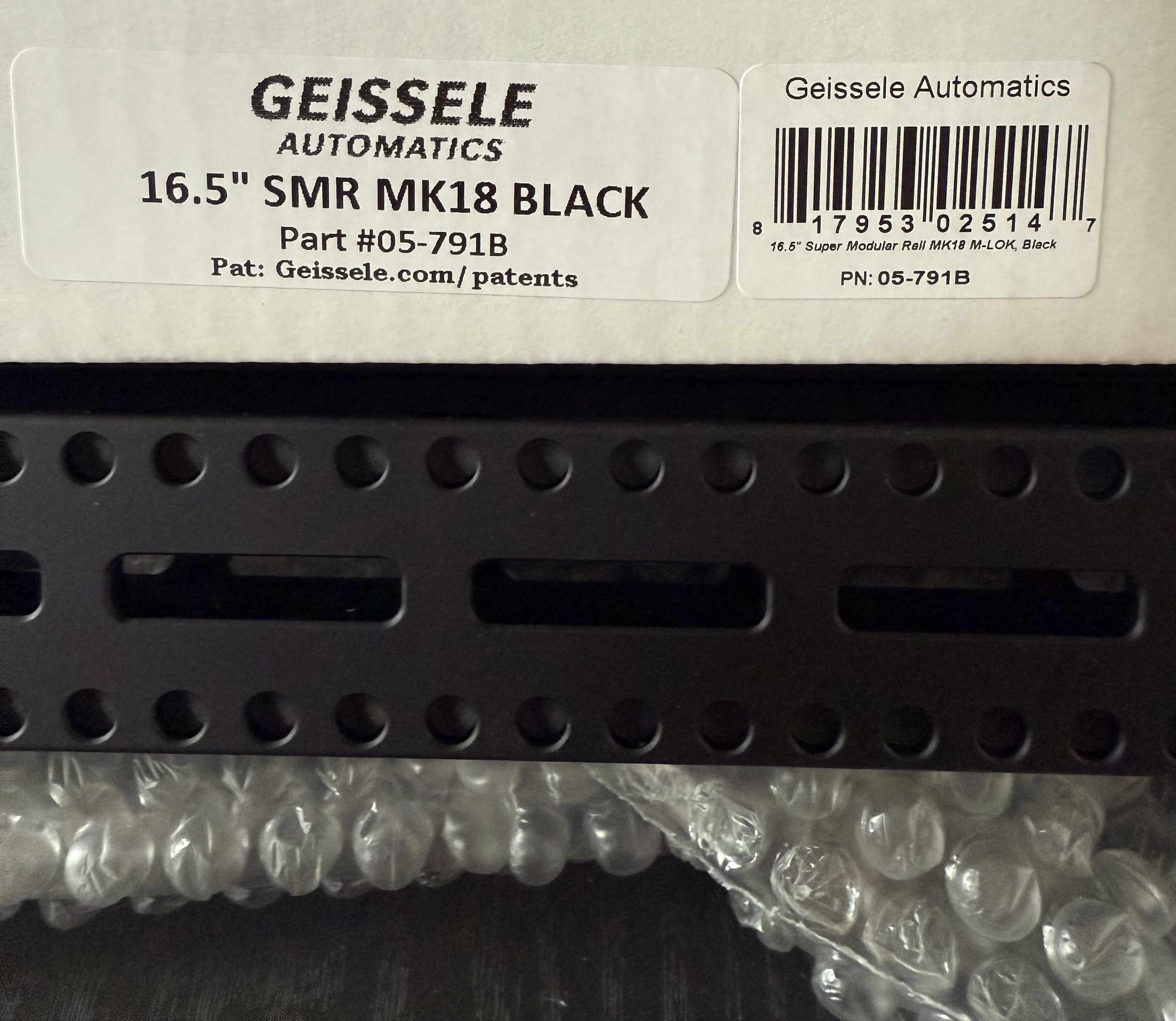 New in box. Geissele smr mk18 arca rail 16.5 with barrel nut wrench. $275 shipped. Zelle or MO.