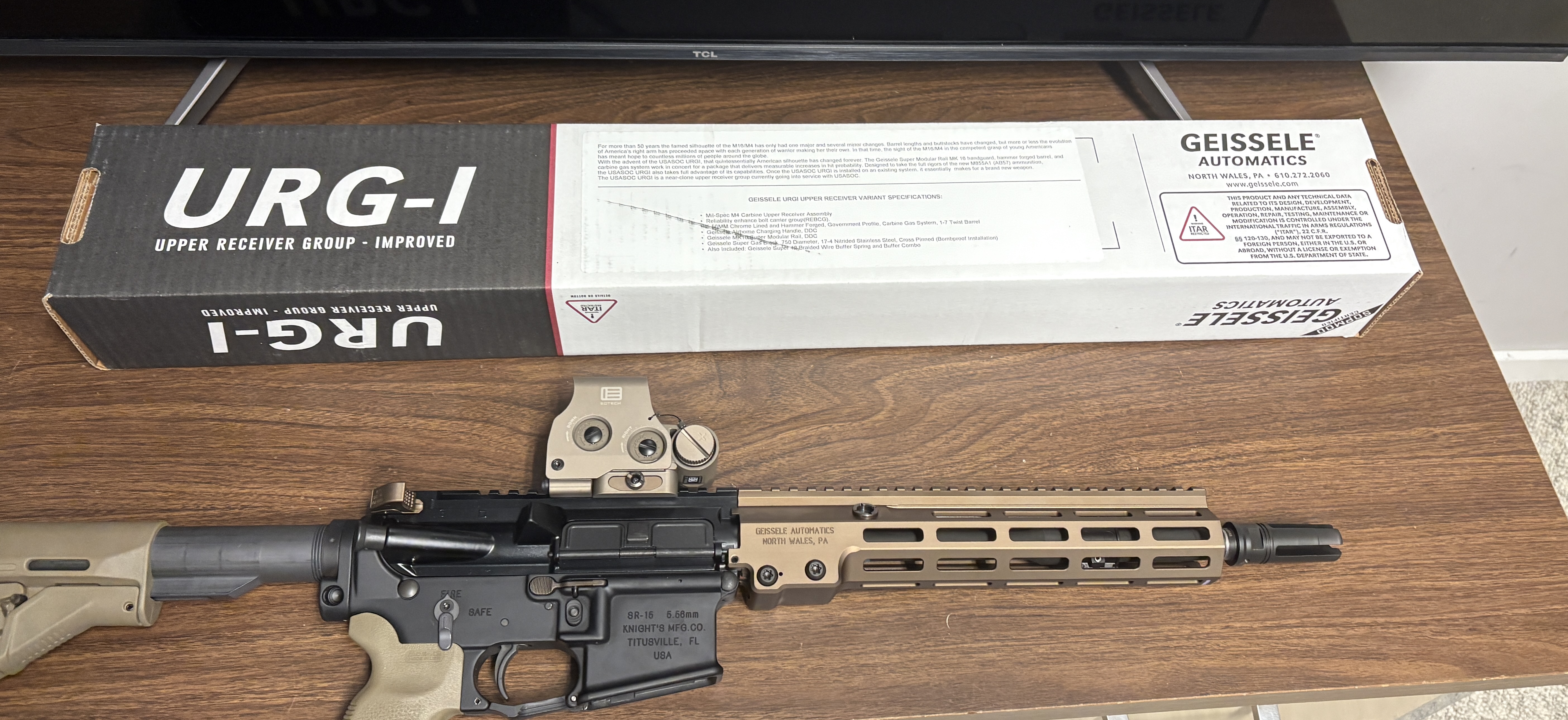 Brand new geissele URGI 11.5” complete with airborne CH, REBCG, buffer, buffer spring. $1,150 shipped. Only put on the lowers for pictures but going with a 14.5”