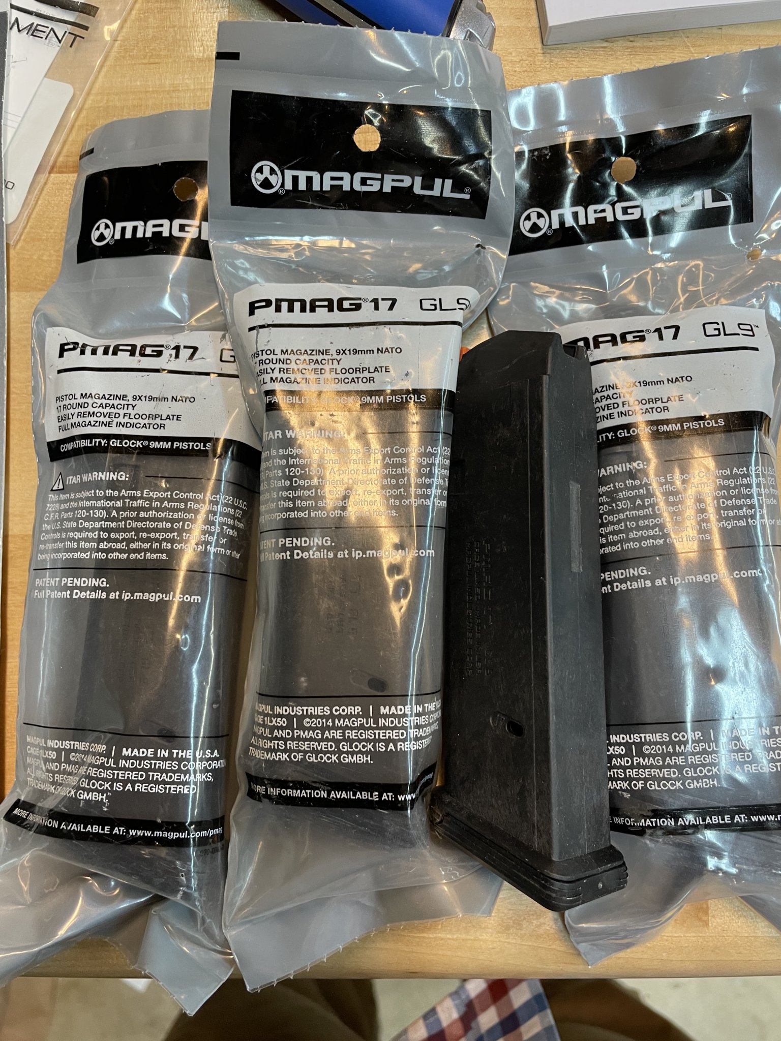 4x Magpul GL9 9mm 17 round magazines (3 NIB, 1 open) - $10 each