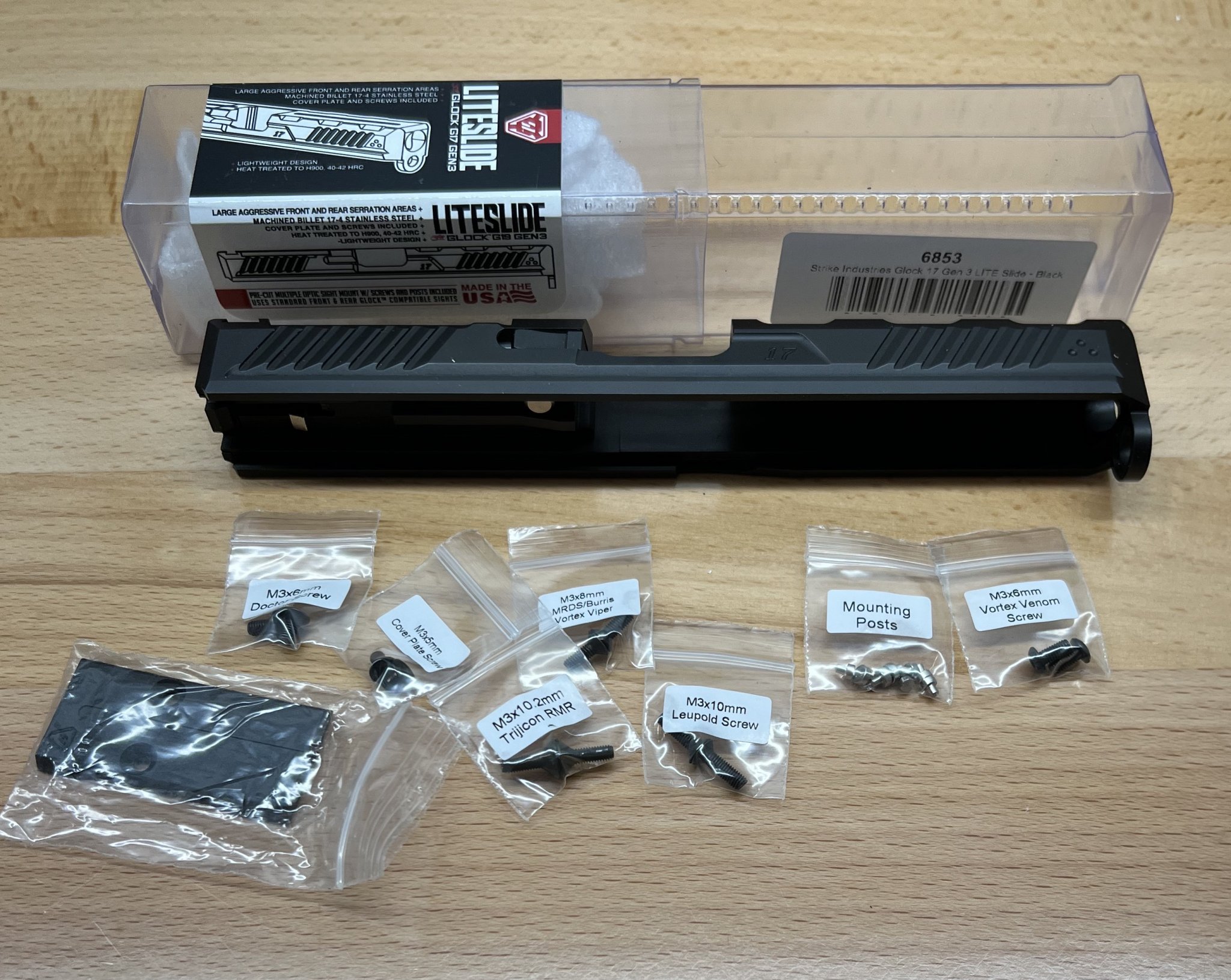 - Strike Industries Liteslide, G17G3 black, optics ready, comes with every imaginable optic mount and includes slide completion kit - $195 shipped