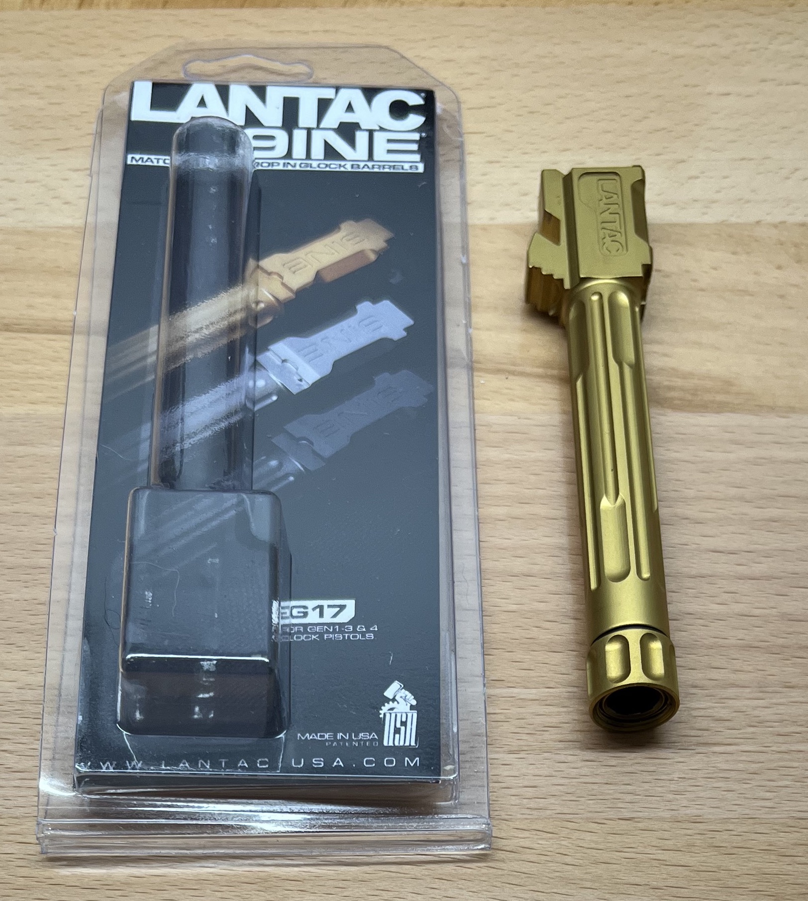- Lantac 9INE 4.5" threaded barrel G17G3, bronzy/goldish color, fluted and awesome-looking - $190 shipped