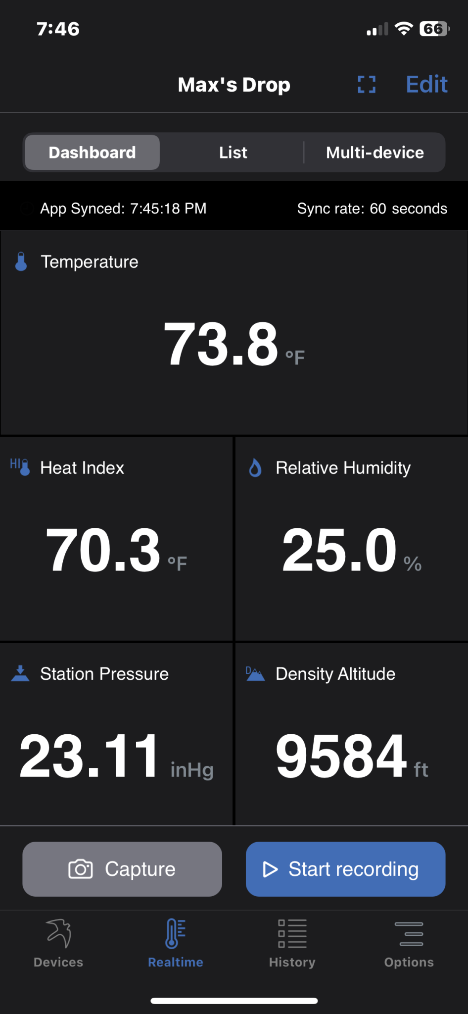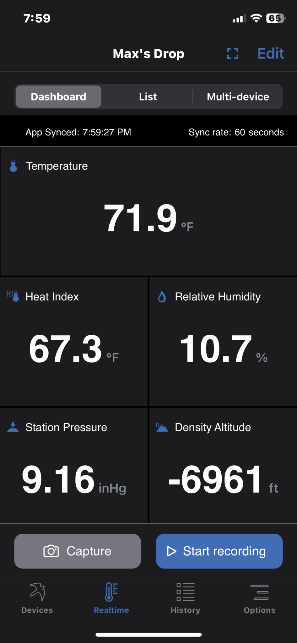 I ran the kestrel Drop and took some screen shots. Ambient then after the canister finished its vacuum cycle. I am at 7200’ above sea level.