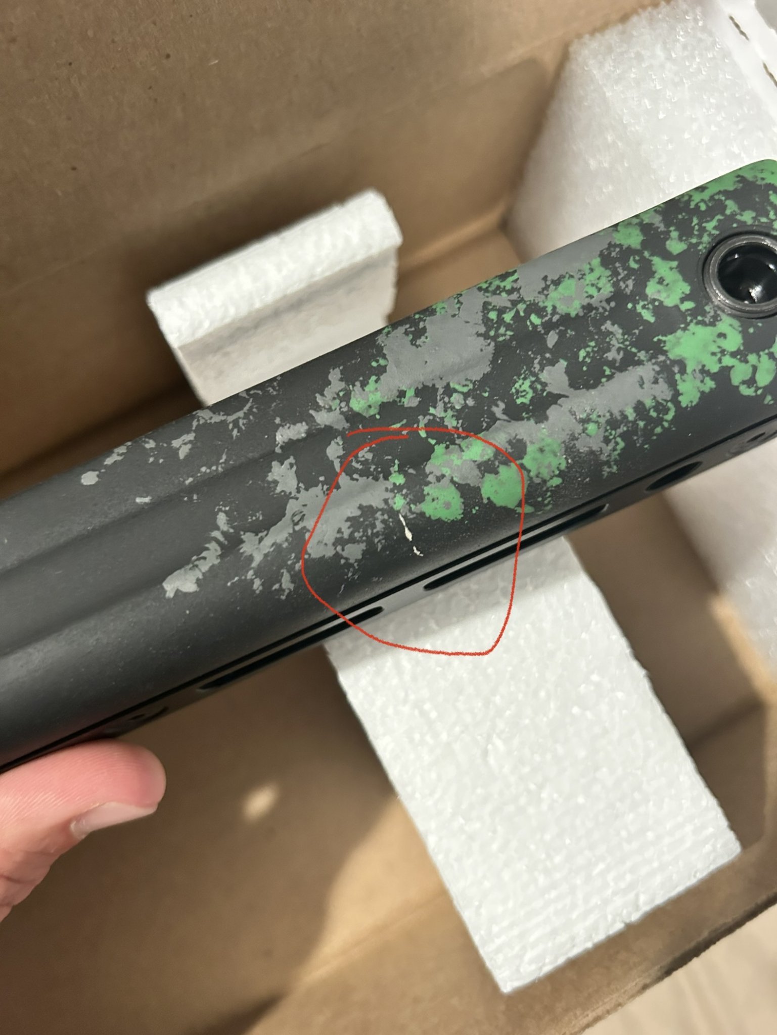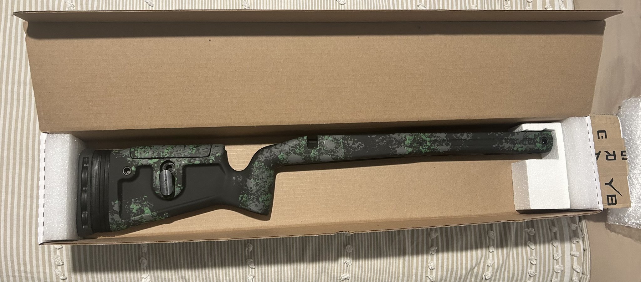 Brand new, never used, never mounted anything in it. Has small paint chip in forend see photo below, $500 Shipped TYD.