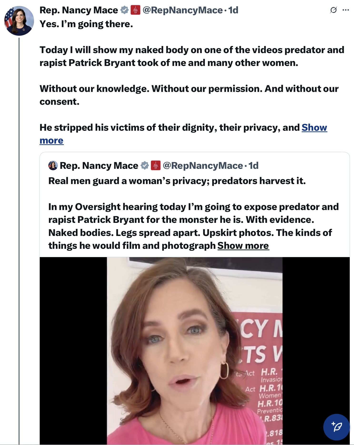 Wtf??Well to dustract us yesterday, resident Congressional hoe fake tits RINO feminazi Nancy Macy announced she’d be showing her “naked body”.