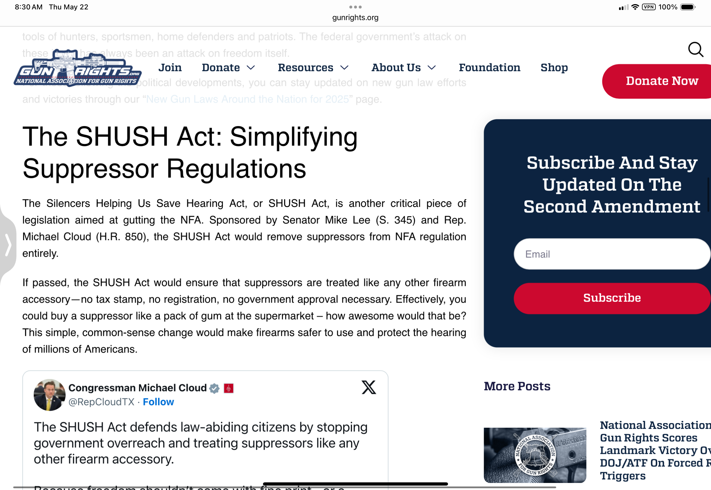 So is still on the NFA? What a joke. If so its a 99% loss. The hoops and BS and legal sht you have to go through and then the fines and penalties if not I couldnt care less about the $200. Its all the other BS that is the problem. Needs to be OFF the NFA. If they want to classify it as a firearm no problem, that would assure it cant be banned, and if I have to get a background check at a gun store to buy one thats fine. And I can make one myself with no serial just like a firearm. Thats fine.... Amending just to get rid of the $200..... they can shove that up their ......Check the link below for TOBBBA.