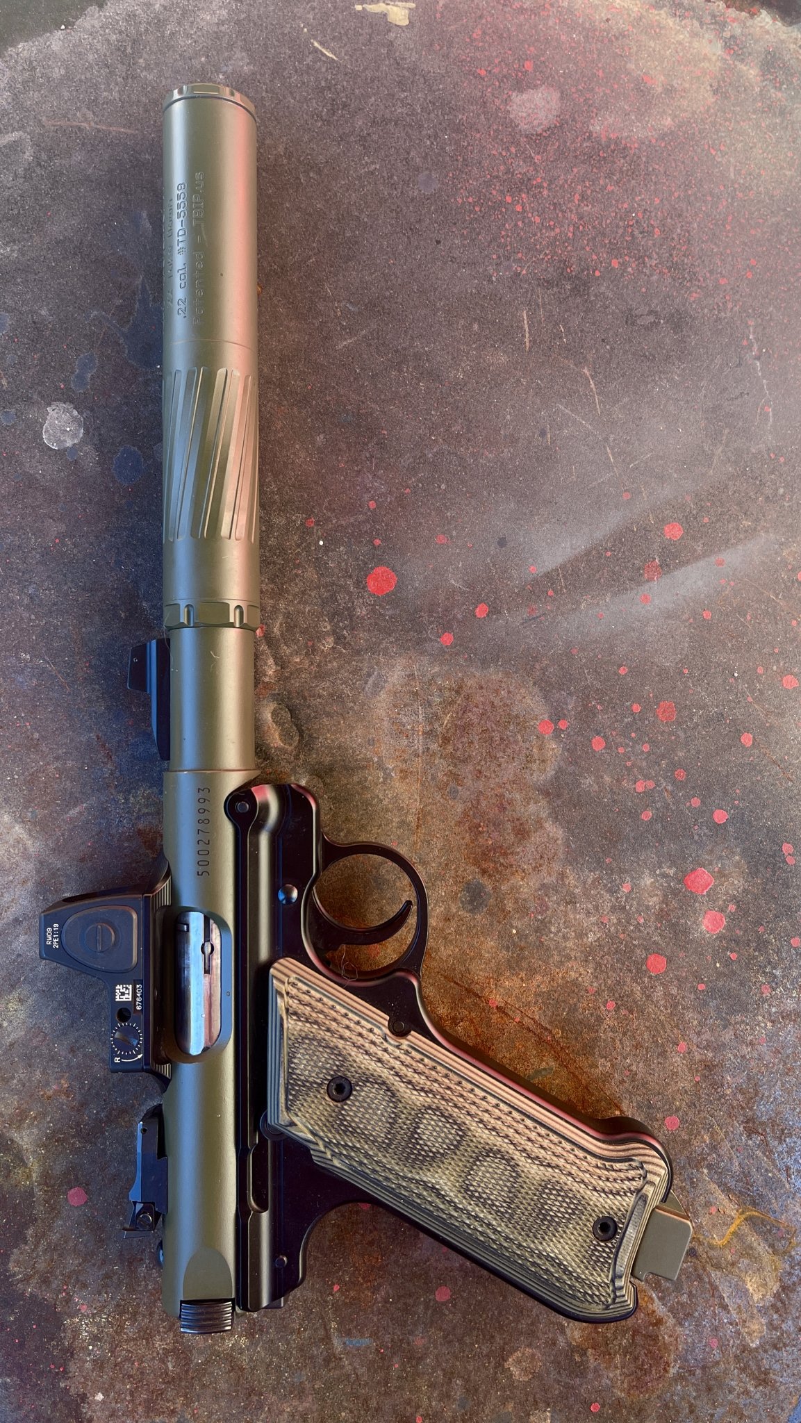 It’s a mk IV. I had ADCO cut it down (3.070”) thread it and reattach the front sight. They did a great job.Is that a Ruger MKII with a bunch of gunsmithing or did you get a more modern one? I looks awesome, I was looking at a mark IV because I like the idea of them being easier to disassemble/reassemble, but the ones with rails look so bulky.