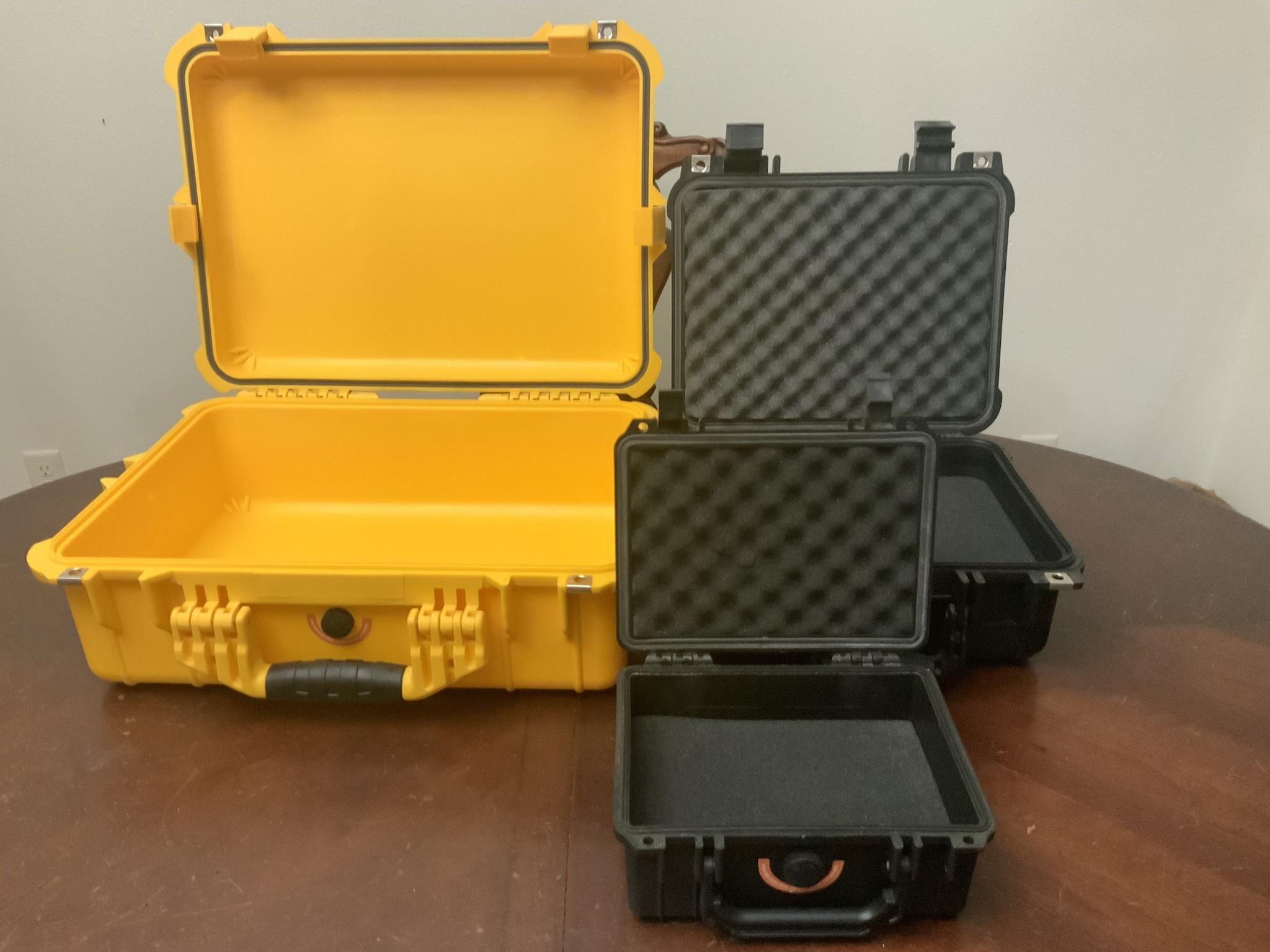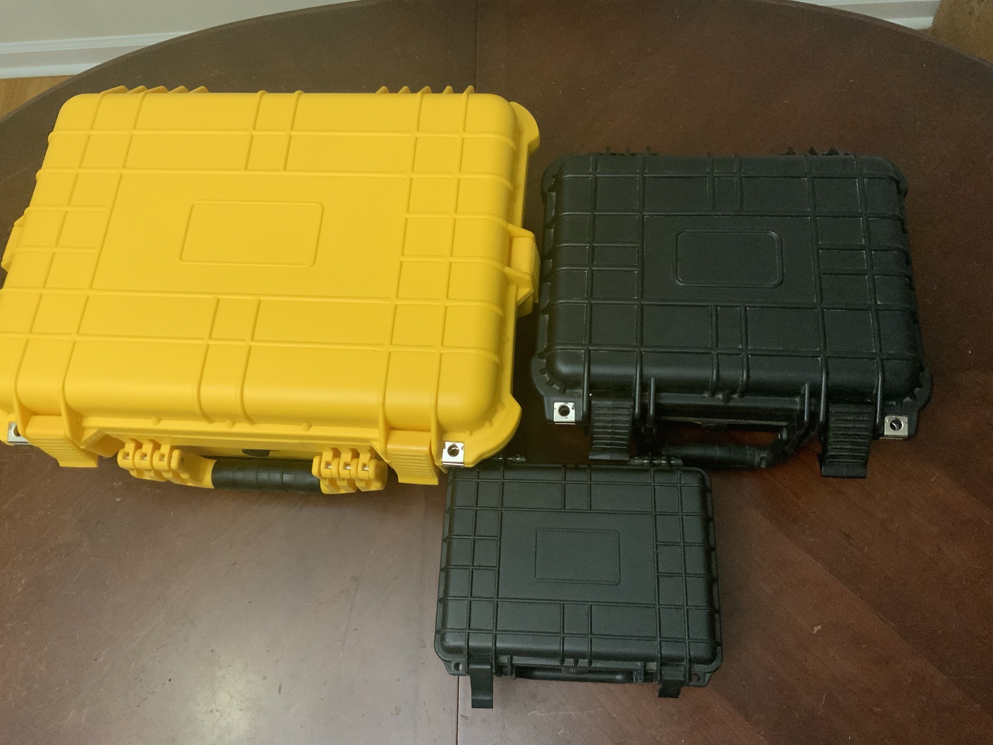 For sale I have these Harbor Freight cases. First one is Apache 1800, small, black. Next is 2800, medium, black. Lastly 4800, XL, yellow. They are all in good condition, extremely durable and extremely versatile cases for your gear. The only thing needed is some foam for the yellow XL one. Will ship ASAP. Asking $30 for all three which I believe is fair as most will go to shipping