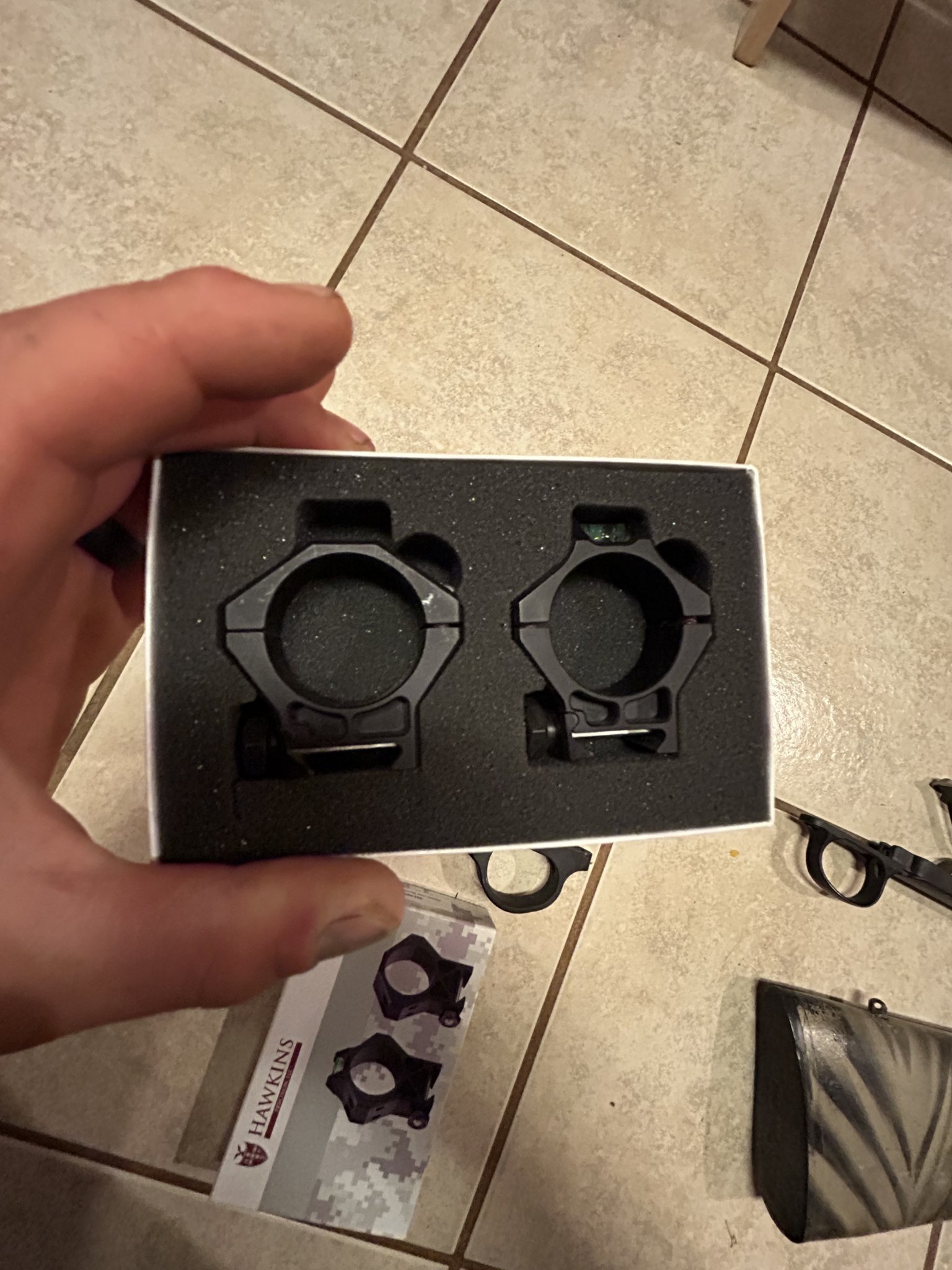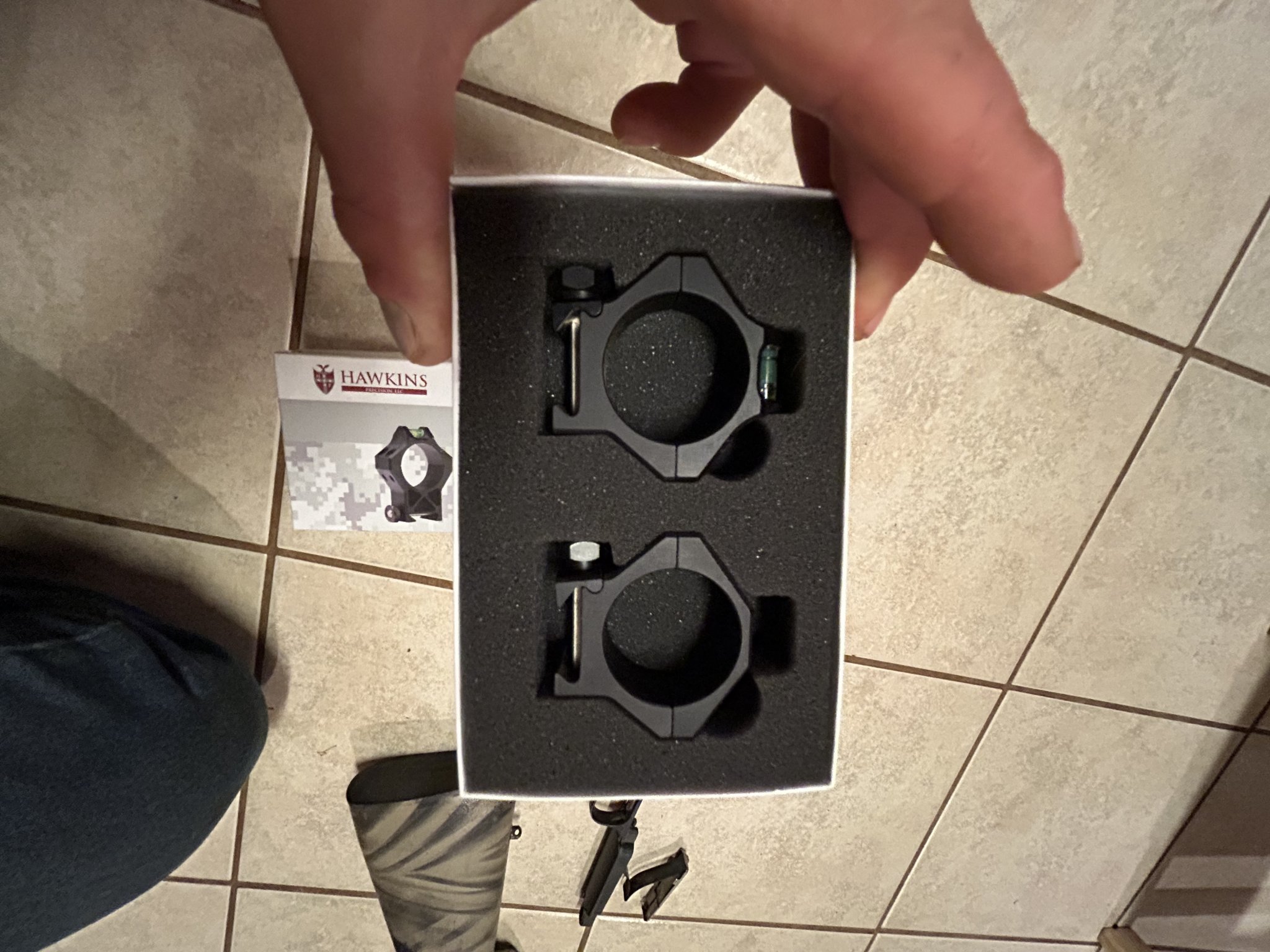2 sets of Hawkins ultralight rings with top center level. One medium and one low set. Both lightly used and are in great shape only thing might be some lock tight residue.