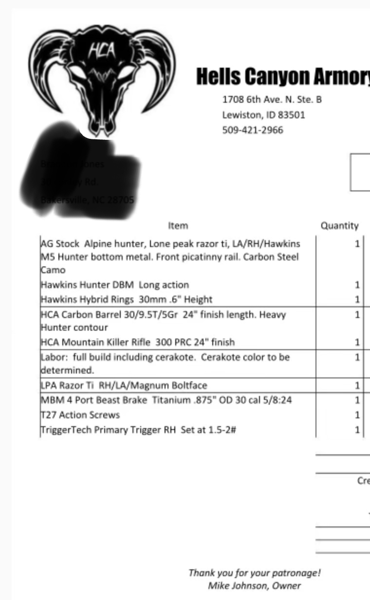 Selling a mint condition Hells canyon 300 prc carbon killer less than 75 rounds fired shot.48 with factory eldx and even better with a start load of