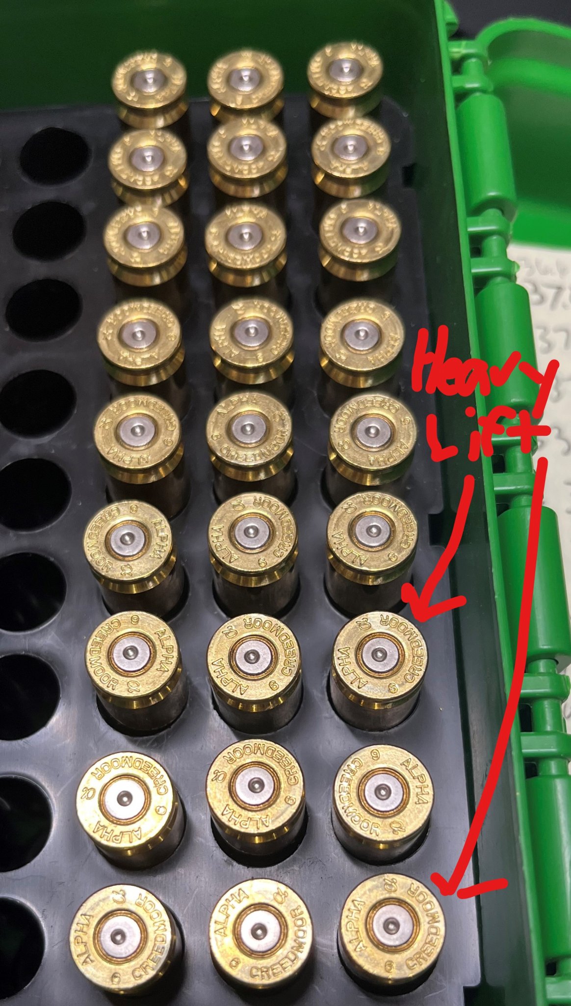 I started load development for a 6 Creedmoor and have run into heavy bolt lift with a very light load. I have read several other threads on this and haven't found what could be causing my issue.