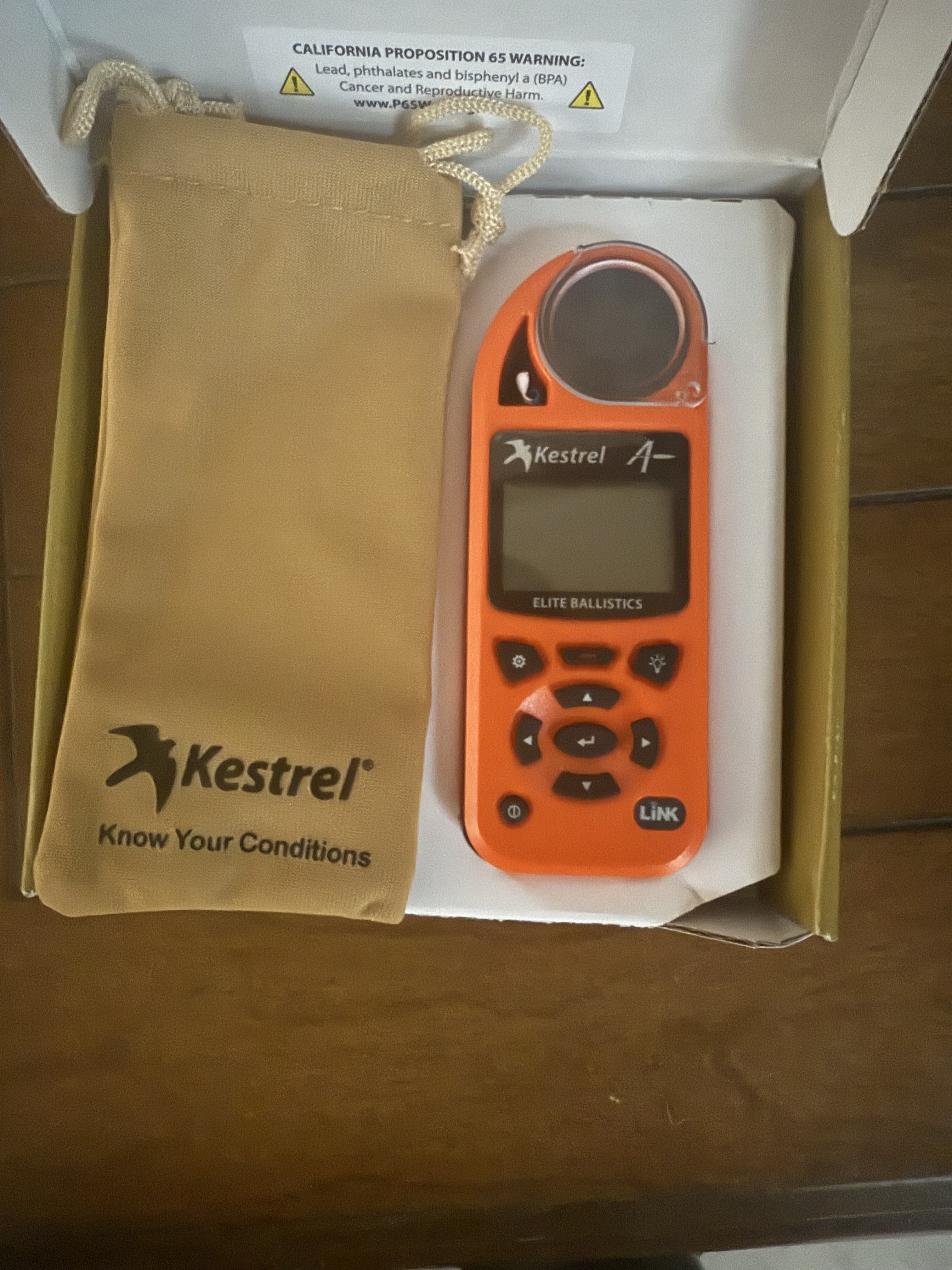 Kestrel 5700 Elite with AB and Link in Blaze. Never been in the field, only played with in the house. Looking for $600 shipped and insured OBO. SOLD