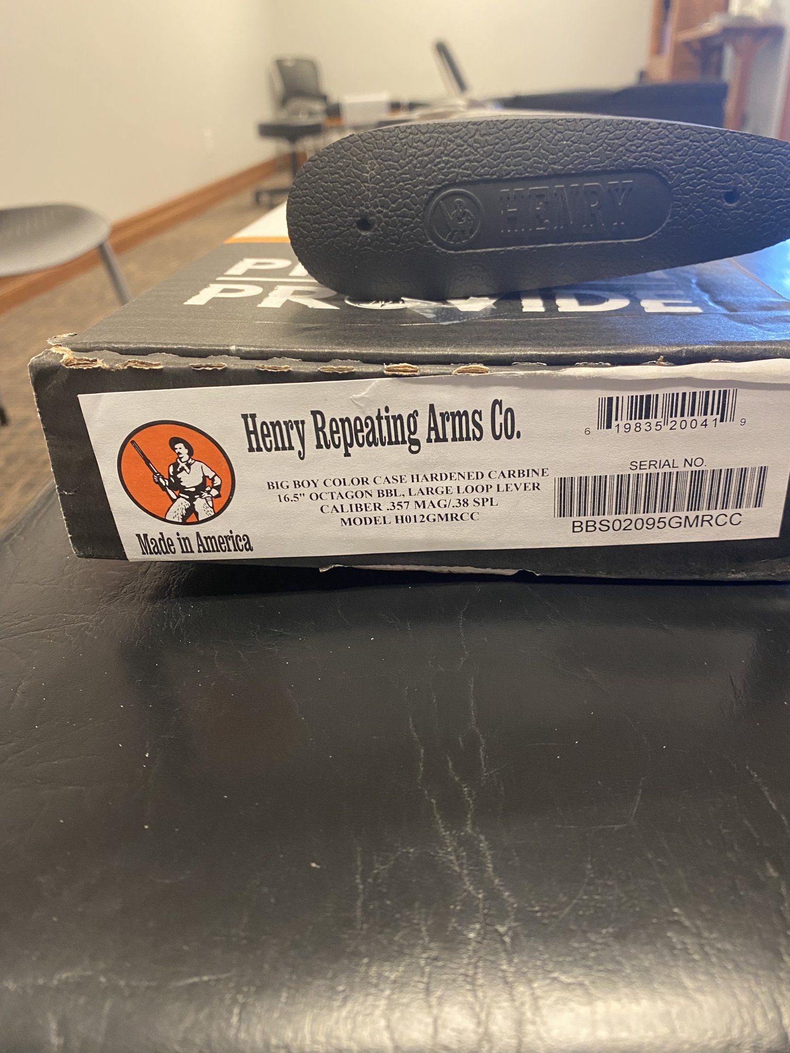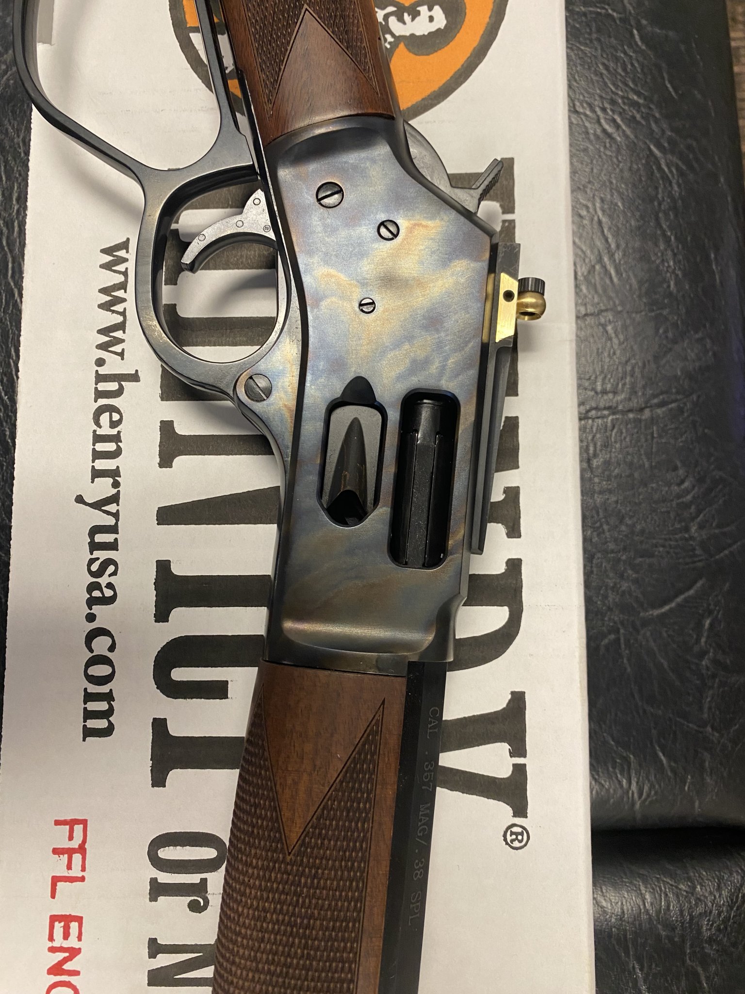 For sale is unfired new condition Henry Big Boy Color Case Hardened Carbine in 357 mag/38 special (MSRP: $1246)
