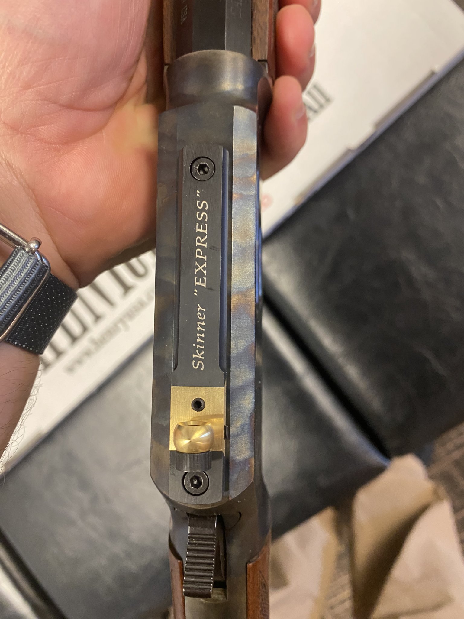 Comes with upgraded sights installed (original sights also included): Skinner Xpress black gold. Also has the dovetail slot blank installed. (MSRP: $123)
