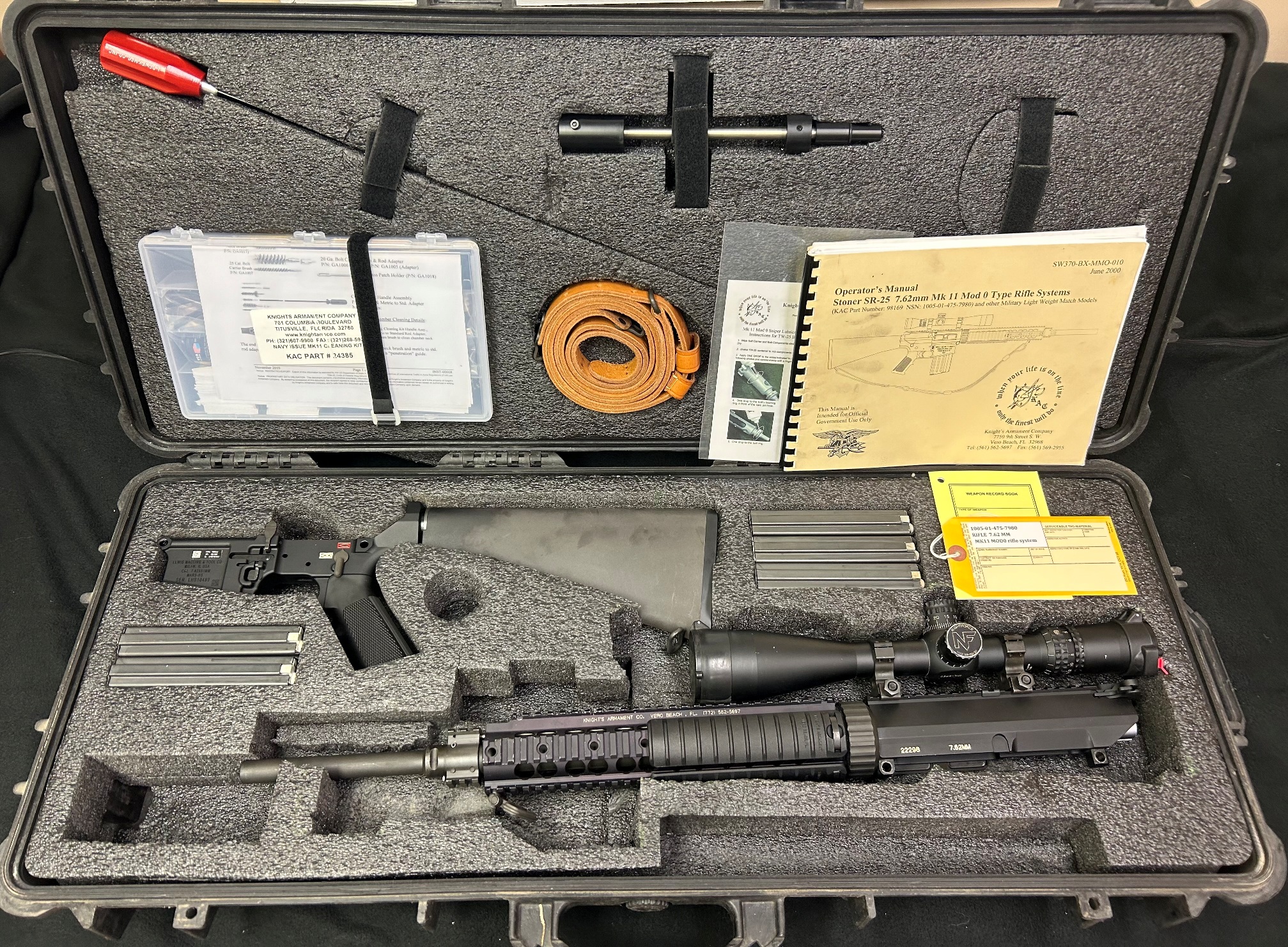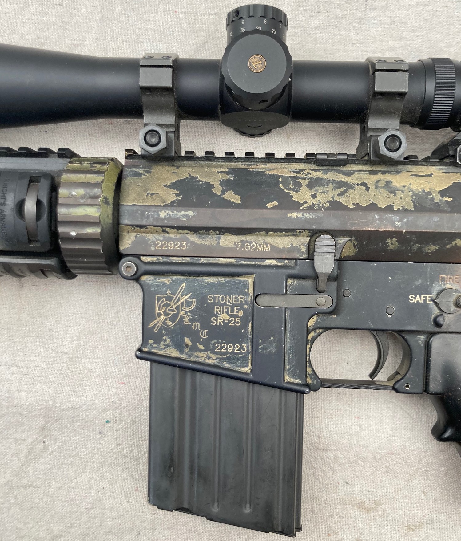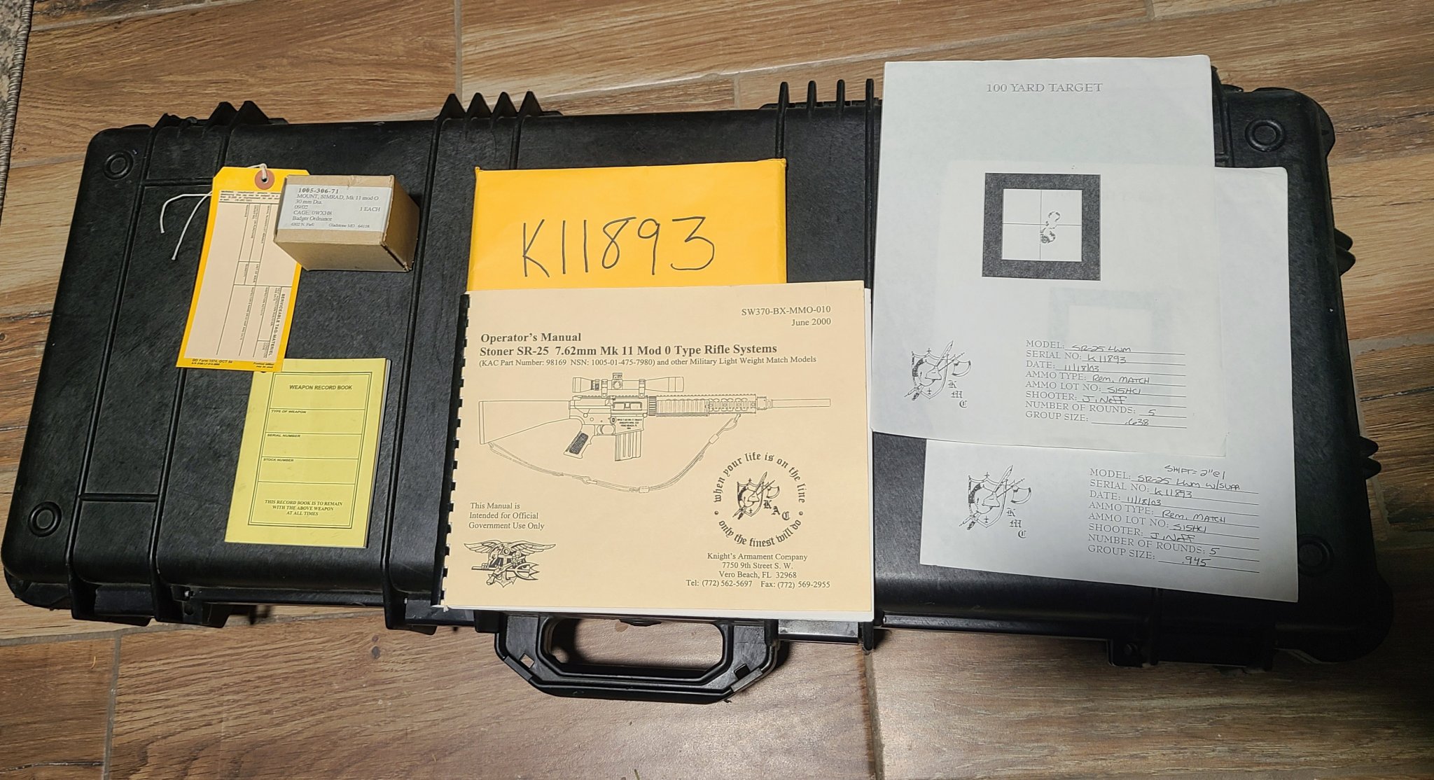 May I ask how much you paid sir?Very interesting thread. This is my bring back I bought that is confirmed from Knights. My guess is this was made around 1995 as a SR25 and later updated to Mk11 with a new barrel and hand guard. Any thoughts?