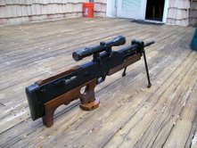 And what the German Army actually used, which was the G3 SG-1. Which improved most of the obvious failings of the standard G3. It got a new stock with an adjustable comb which actually let you have consistent cheek weld, it also had a heavy buffer which helped a bit with recoil. And then a new "swiss watch" trigger system, which was full auto (god why?), but with a set trigger as well for precision shooting which is sorta useful, but also not. And finally a 1.5-6x variable power optic which at least improved the reticle to a fine crosshair with some limited milling capabilities (so you could actually hold for wind), elevation was again adjustable to 600m. Which given the capability (or lack therof) of the ammunition is probably a pretty realistic upper end for range.