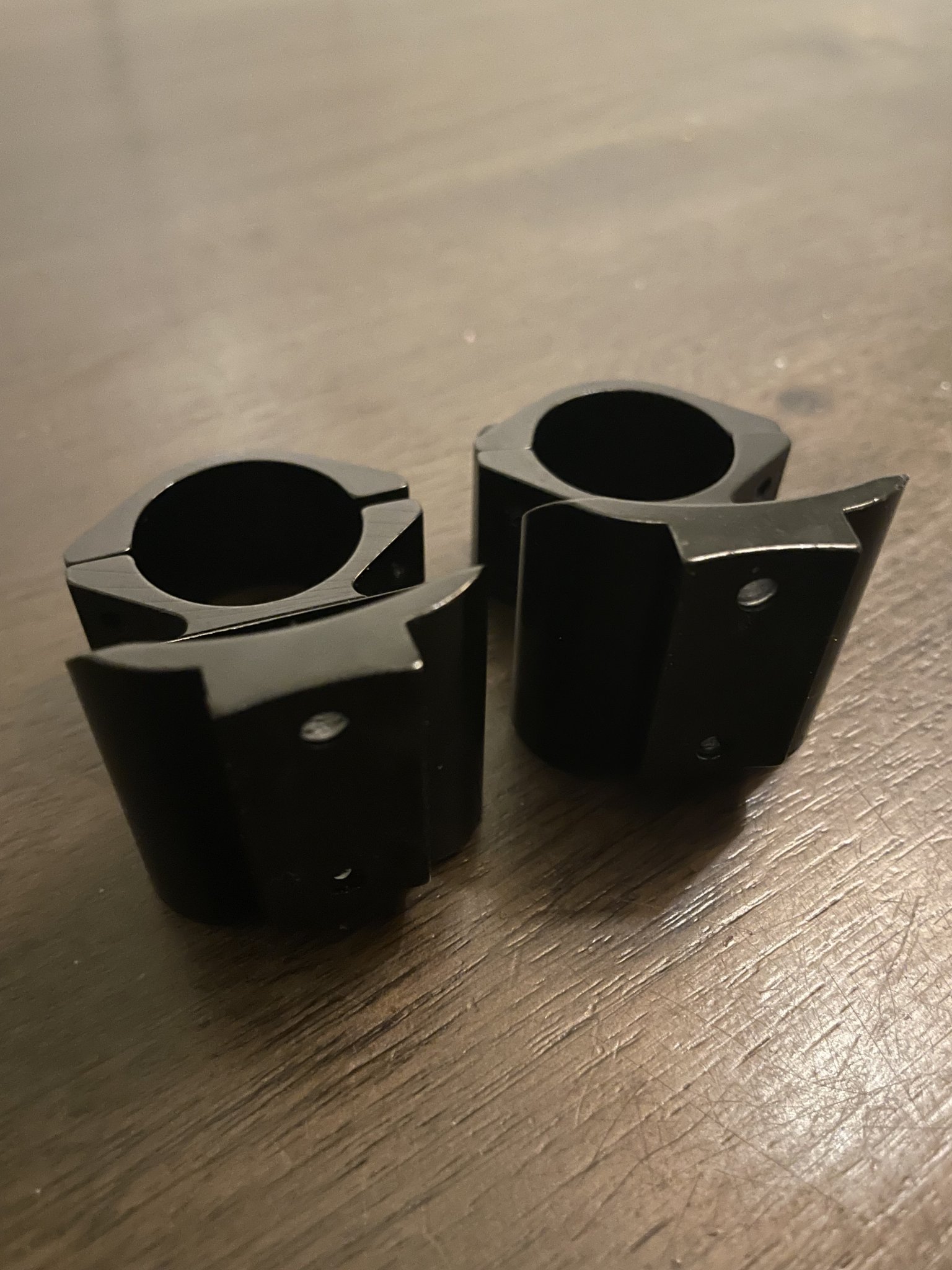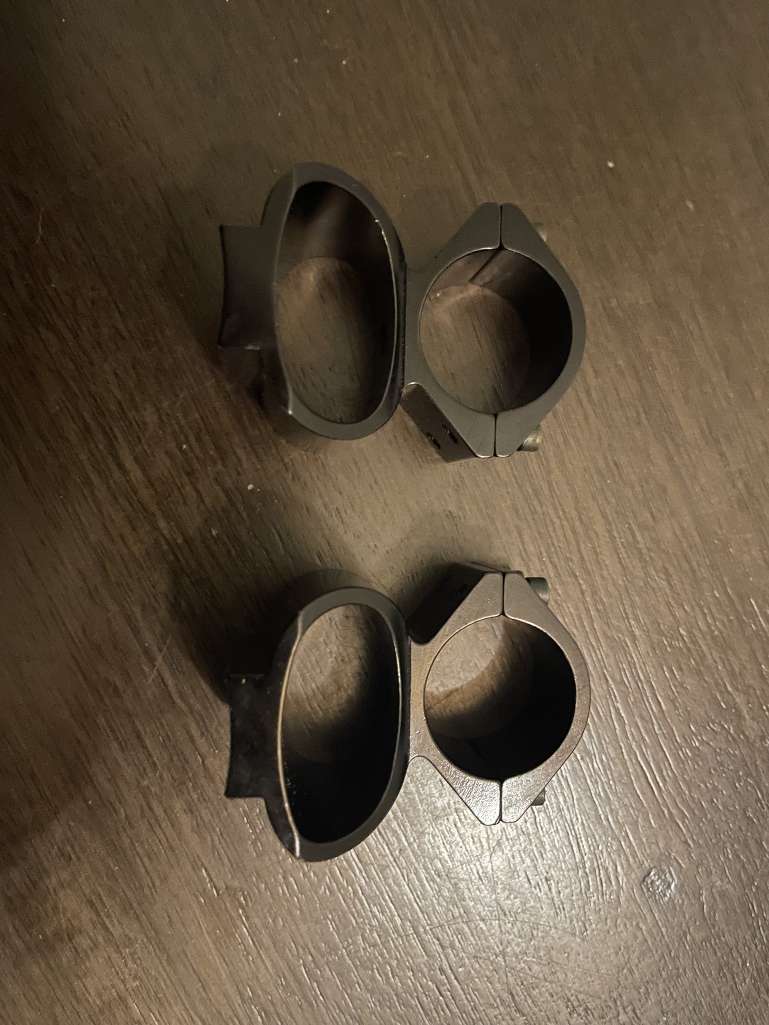 Got some vintage Holden Ironsighter model 702 rings off my Browning A Bolt. If anyone is looking to return an a bolt to its original glory, these are for you. $25 shipped. 1” tube diameter I believe. They had a Tasco World class mounted in them. Pretty decent shape, none of the ring cap bolts are stripped. You’d need new bolts to mount to action.