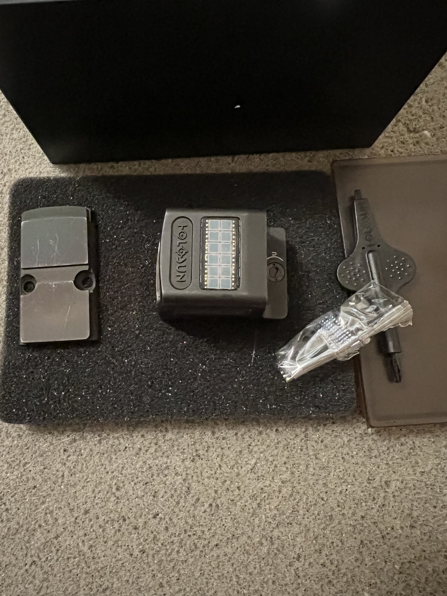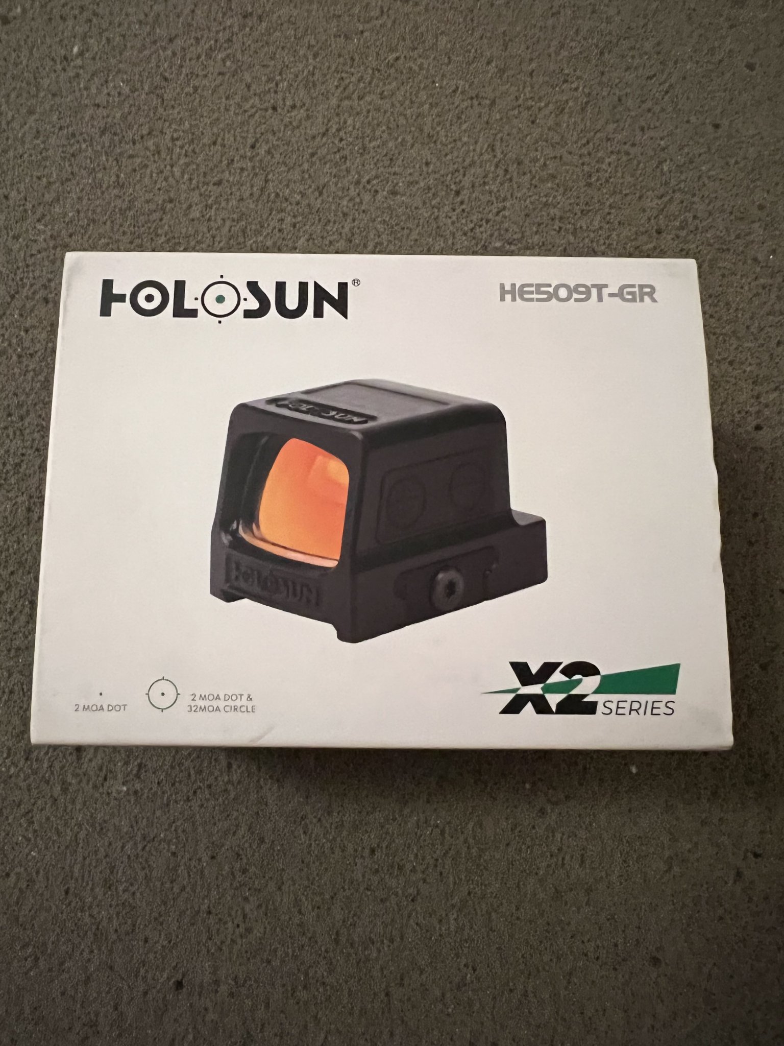 Like new Holosun 509t x2 green dot. Less then 200 rounds of use. Comes with everything that it shipped with: adjustment tool, rmr to 509t plate and screws, window wipe, box and manual. The rmr to 509t plate is new, the optic was mounted on a milled slide.