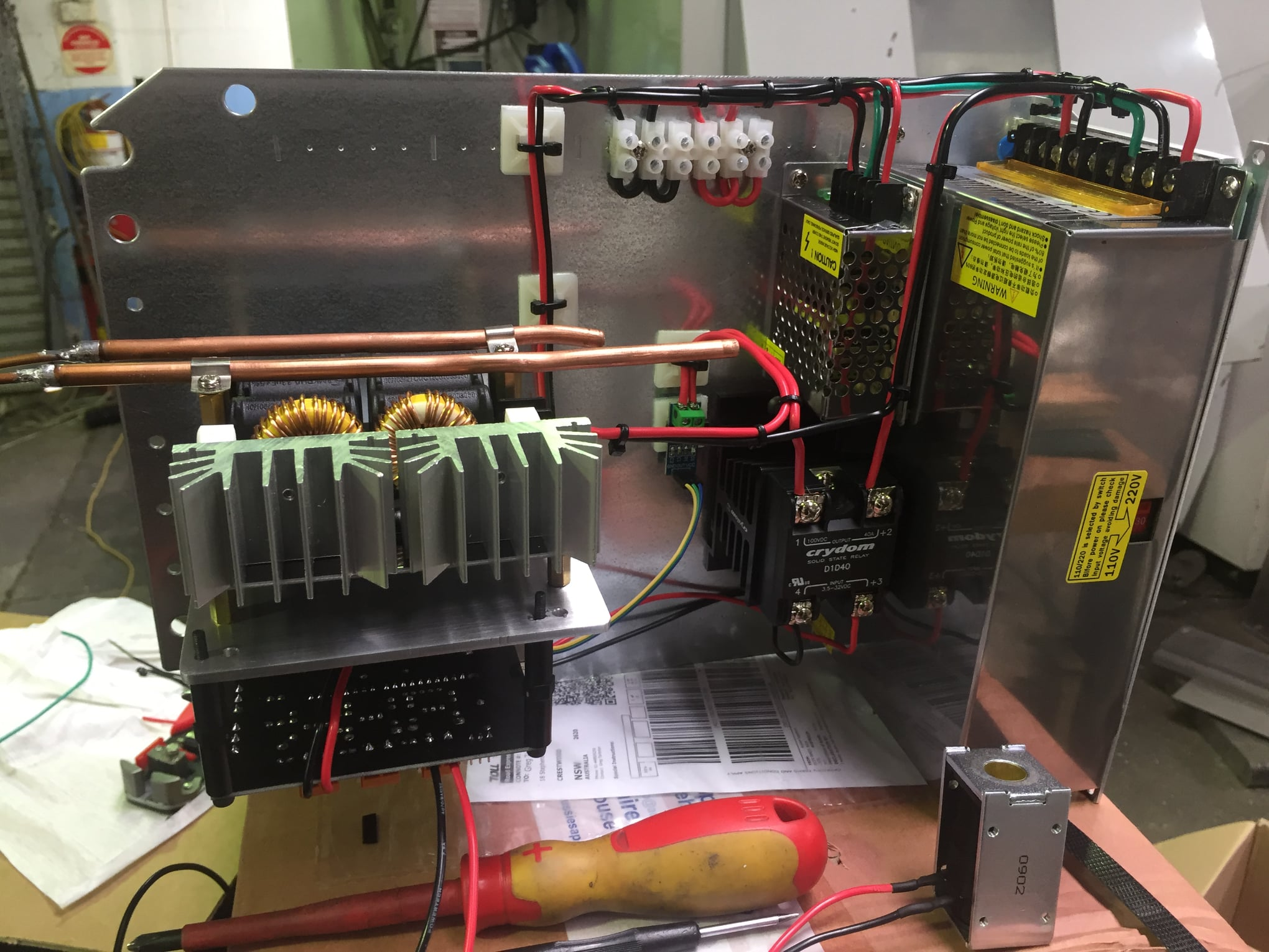 The coil has coolant pumped through to cool it and a little radiator at the rear of the machine. It uses one of the ZVS boards, a solid state relay and a 48v 1000W power supply controlled by an MGNZ Arduino control board.