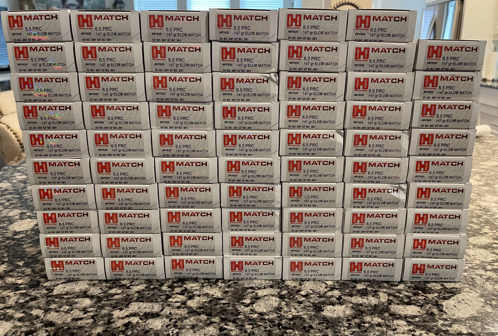 I have 69 boxes of Hornady 6.5 PRC 147 gr ELD Match and 15 boxes of Hornady 6.5 PRC 143 gr ELD-X. I’m looking to get $70 per box shipped (5 box minimum). If you’re interested in all of it I would sell all 84 boxes for $5500 shipped.