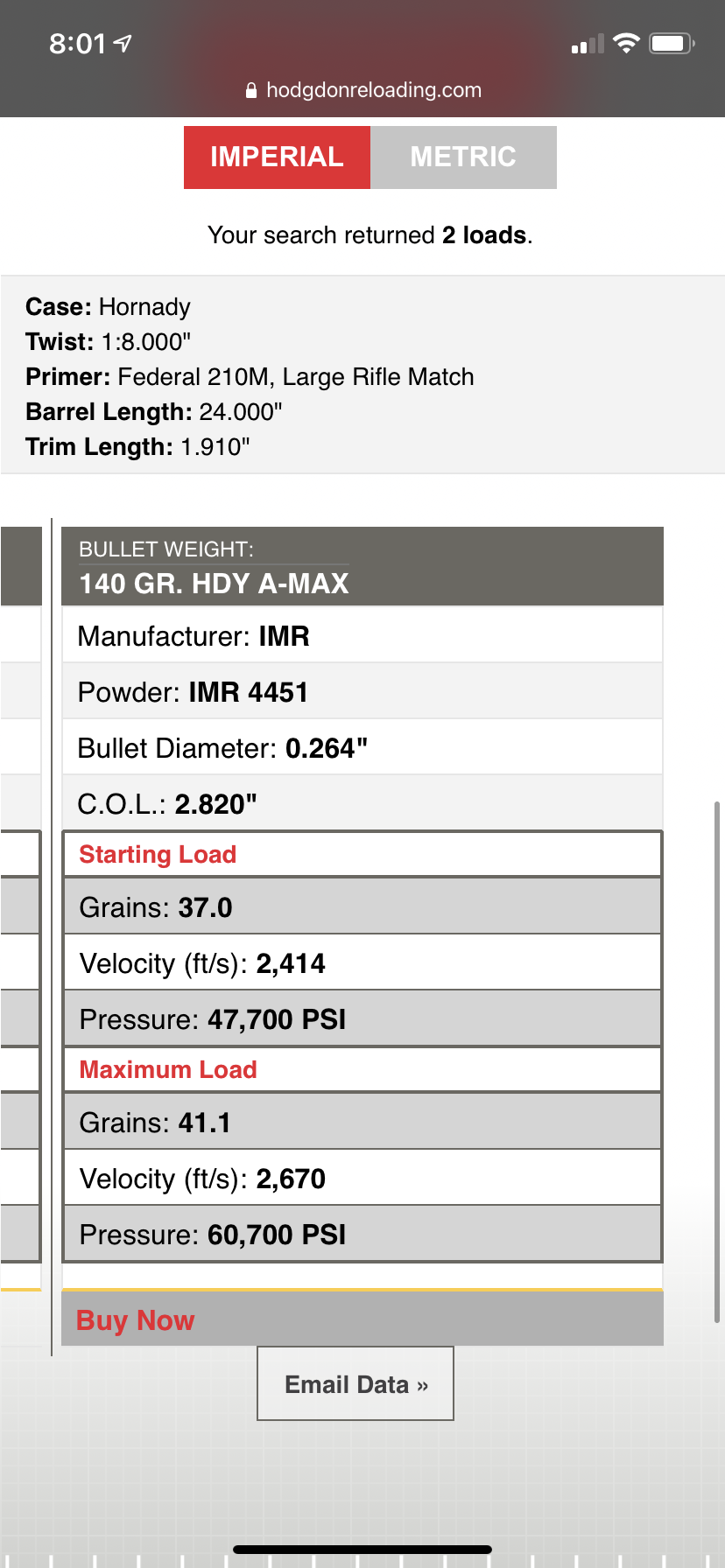 Anyone know if the latest edition of the Hornady manual has data for IMR 4451 with 6.5 Creedmoor 140/143 grain bullets? My 9th edition doesn't. I have data from Hodgdon's website, but I usually like using more than one source.