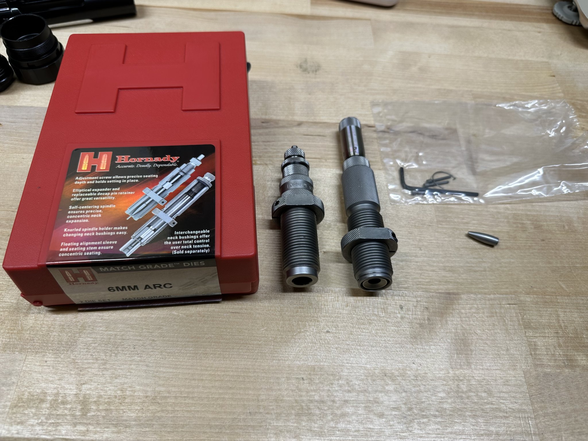 Selling my hornady 6mm arc die set with micrometer seater, and bushing fl sizing die.