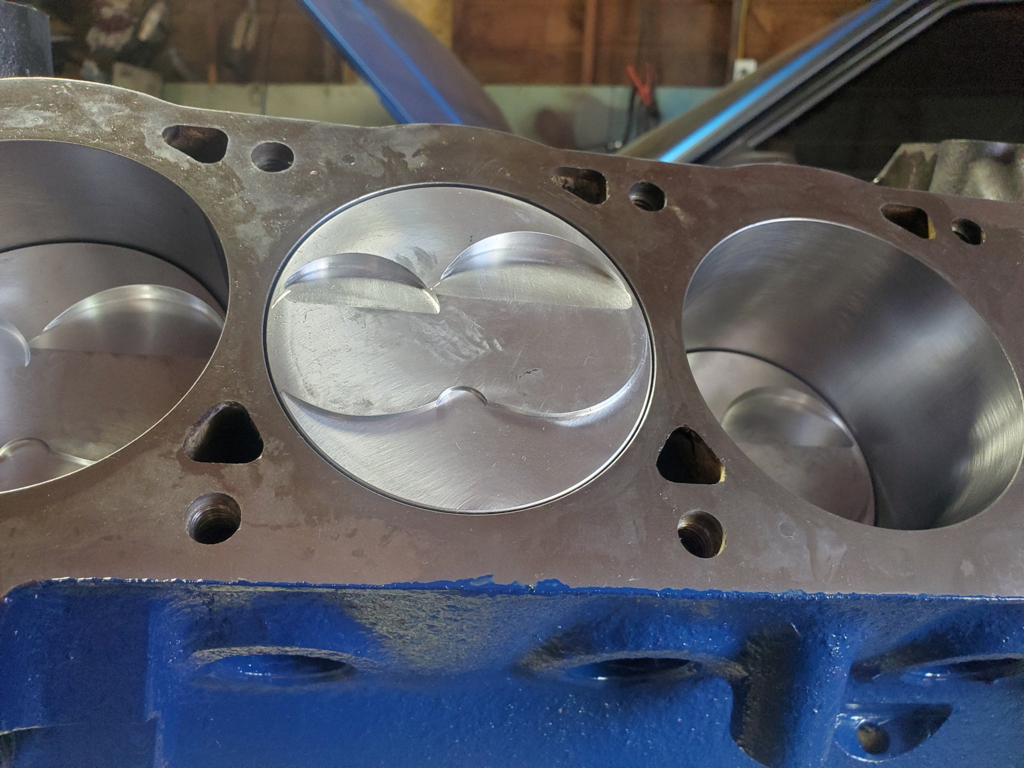 That's not much dish for a motor that's going to run 18+ PSI, but this is what all the cool kids are doing nowadays. Time for a gut check, and then a trip to the machine shop to get the block bored and decked, and the rotating assembly balanced.