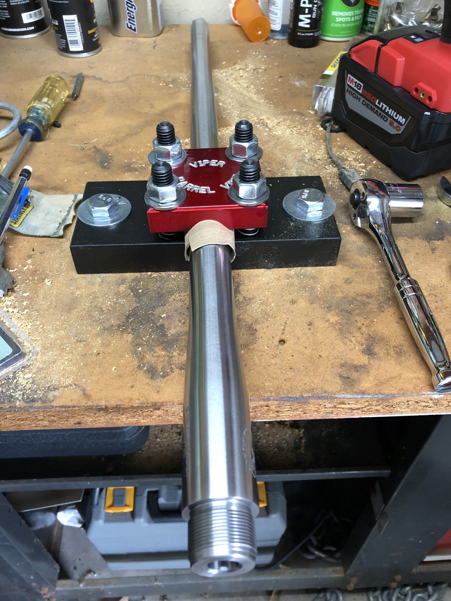Don't get too crazy with it. The viper vice is not particularly strong. It is plenty for doing Remage, savage/ barrel nut barrels. Removing factory shouldered barrels is tough and will be pretty tough on the viper vice. I am hoping mine can last through one more factory remingto barrel removal, when my 223 is shot out. The first two left it in pretty rough shape. I bent the top aluminum piece, most of the coating started to peel off, and one of the nuts froze to the stud. For light duty stuff, its handy as a pocket on shirt.