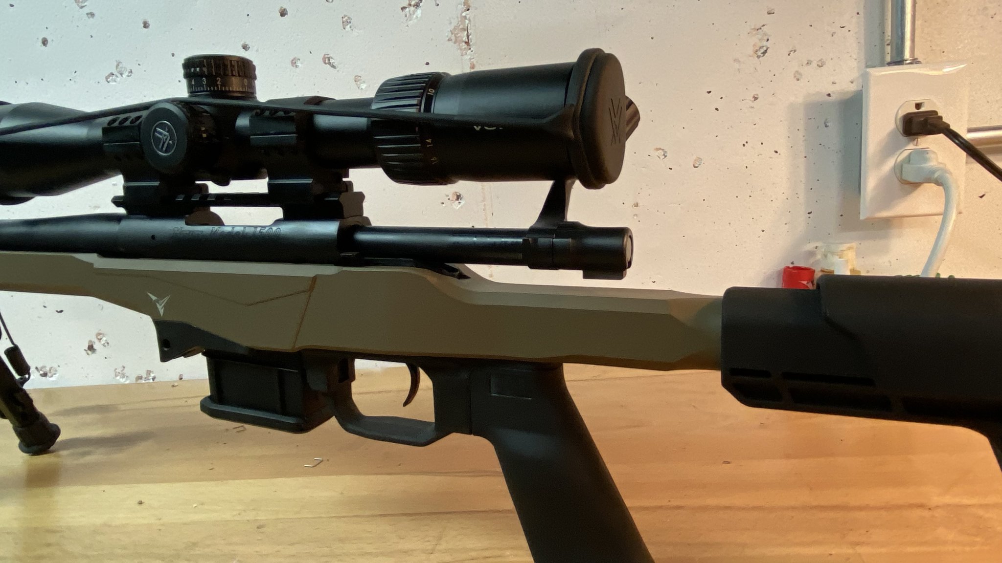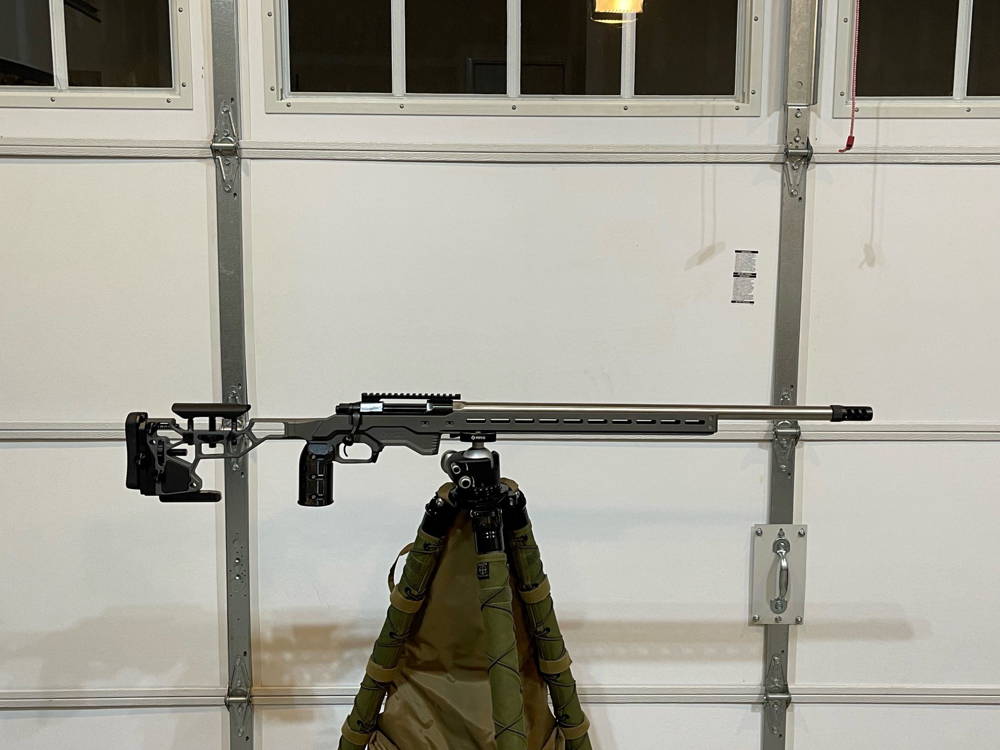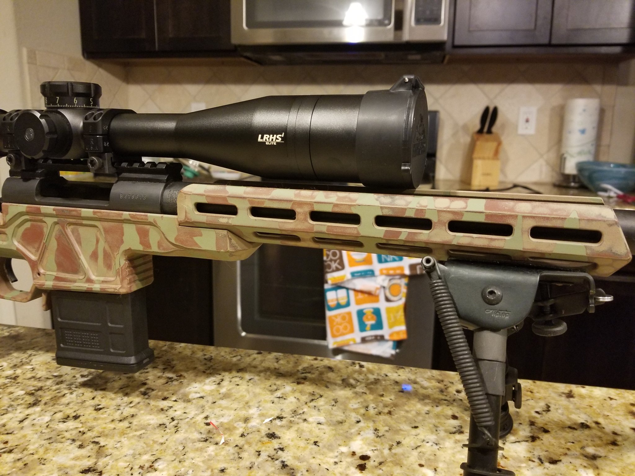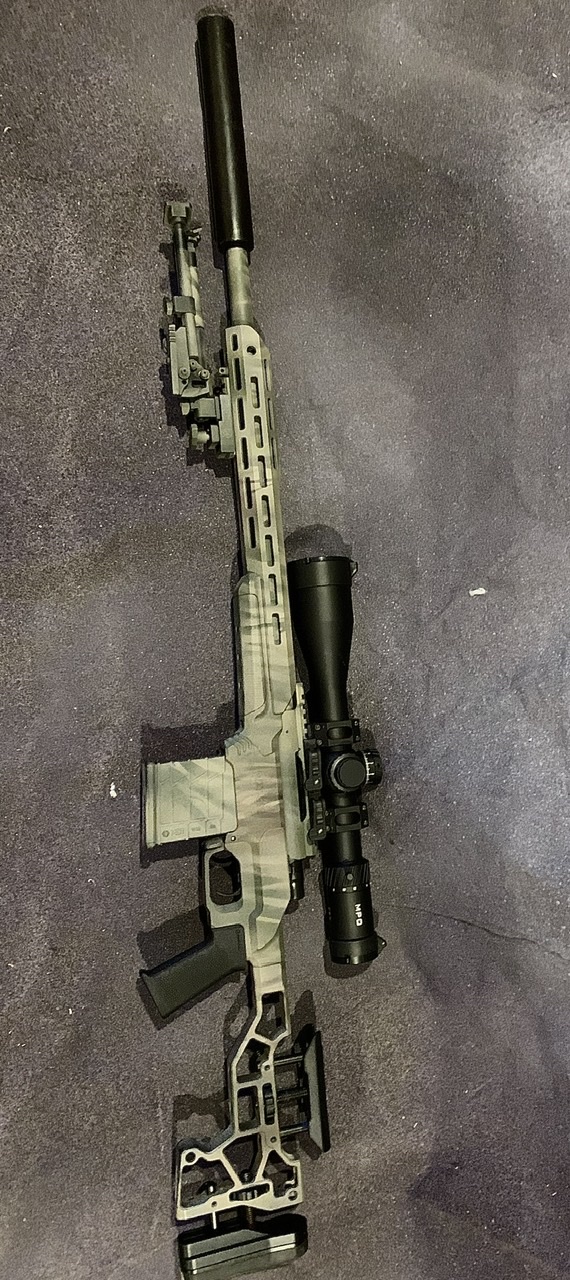 I have a weatherby vanguard 300winmag action that will live in an MDT LSS-XL. It's the 26 inch sporter barrel, I had a compact brake fitted, so we will see how that goes. 40MOA rail, 4.5-27 power 50mm objective scopes will have a little bit of wiggle room for 100 yard zero and should allow holdover for a mile. Vertical grip and a few spare magazines. I'm curious to see how far out I can seat the heavy projectiles, factory rounds leave a lot of space in the magazines.