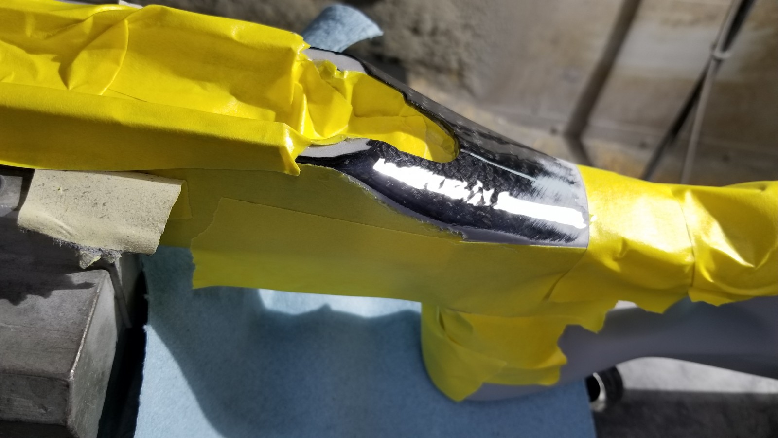 Four: Inlet and make a "skin graft" to cover up the scab on the tang.