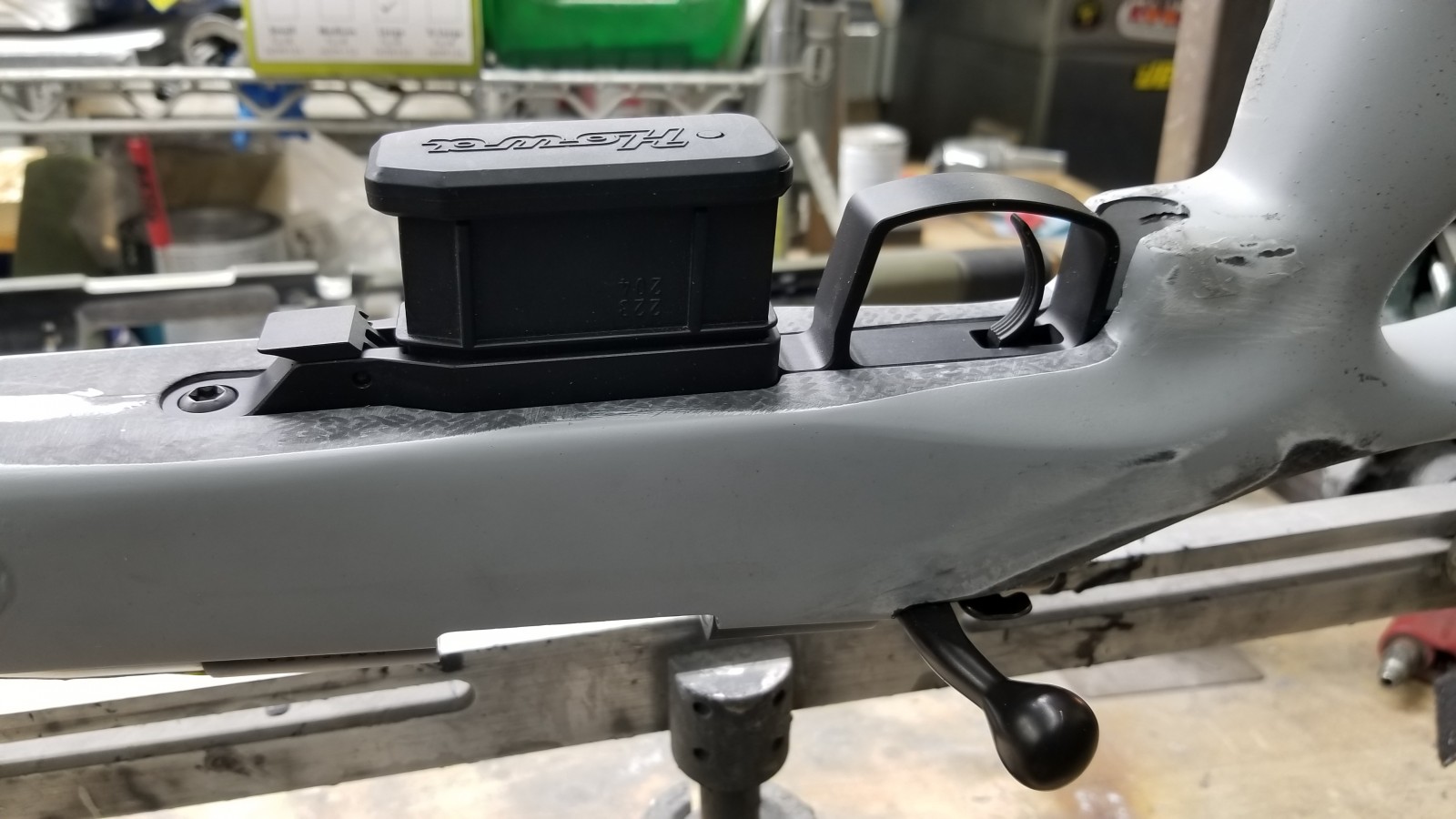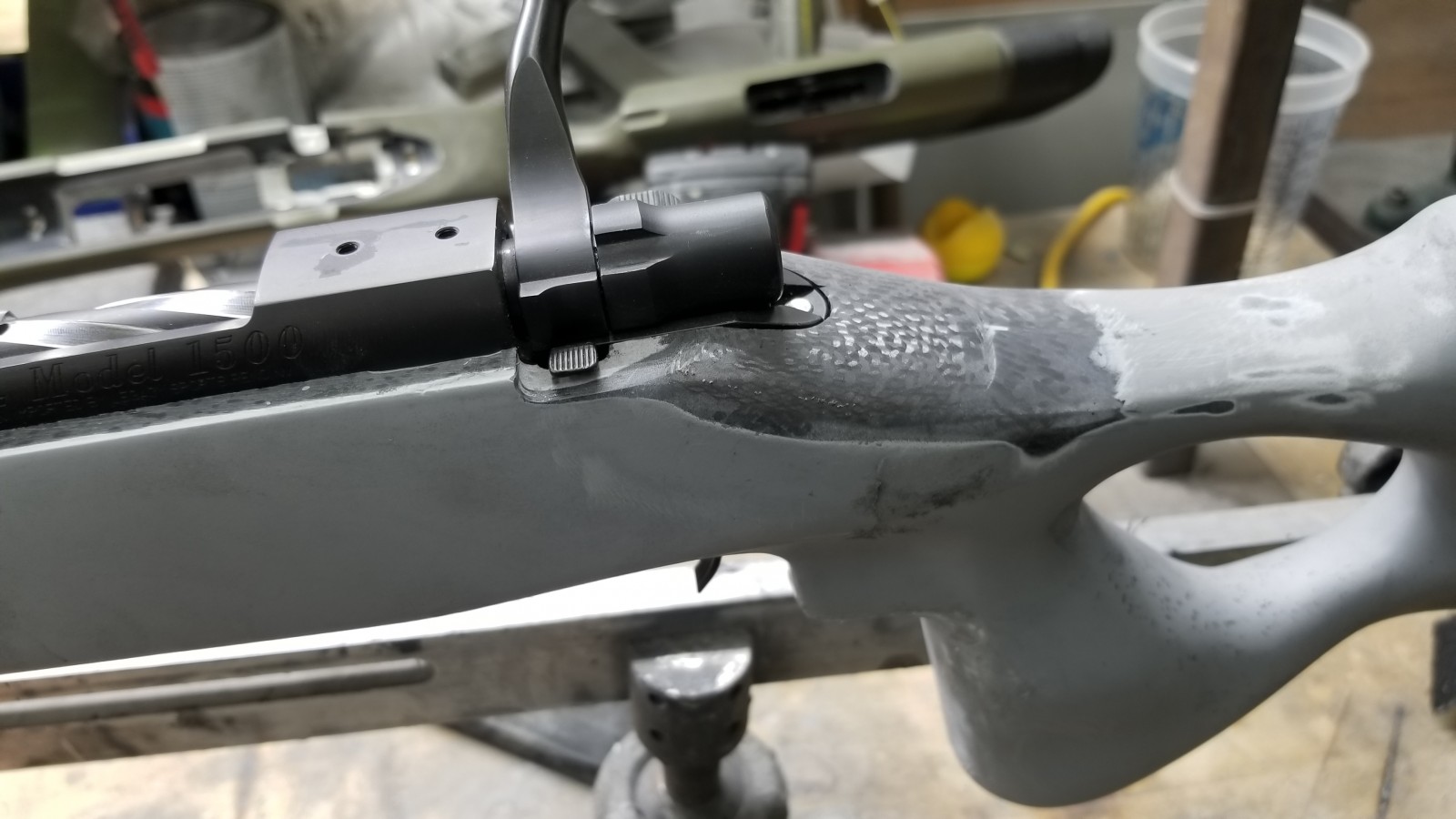 The word I get is that the more popular aftermarket composite stock companies have elected to avoid the Howa Mini 1500 action. My suspicion is that doing so would require some significant costs with retooling molds as the tang geometry is a fairly large departure from what is typical these days.